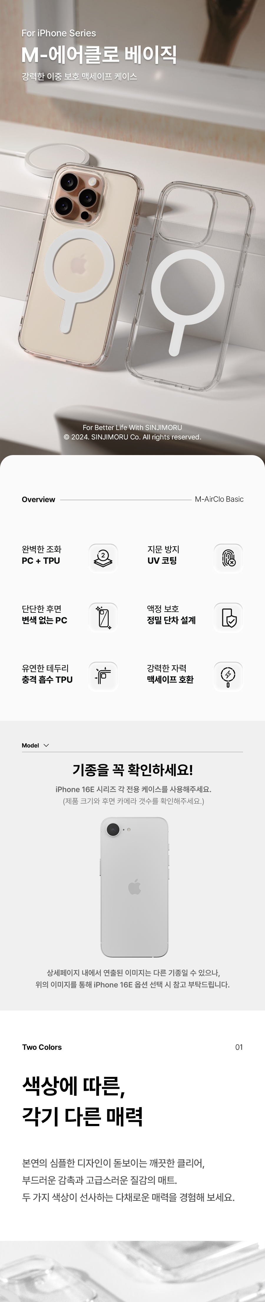 신지모루 맥세이프 M 에어클로 베이직 무광 매트 케이스 아이폰 17 16 15 14 13 12 미니 플러스 프로 맥스