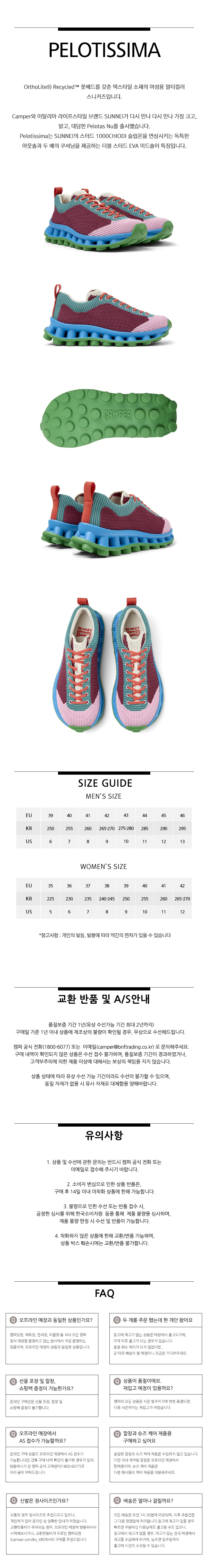 캠퍼 X 써네이 여성 펠로티시마 스니커즈 핑크 앤 버건디 컬러