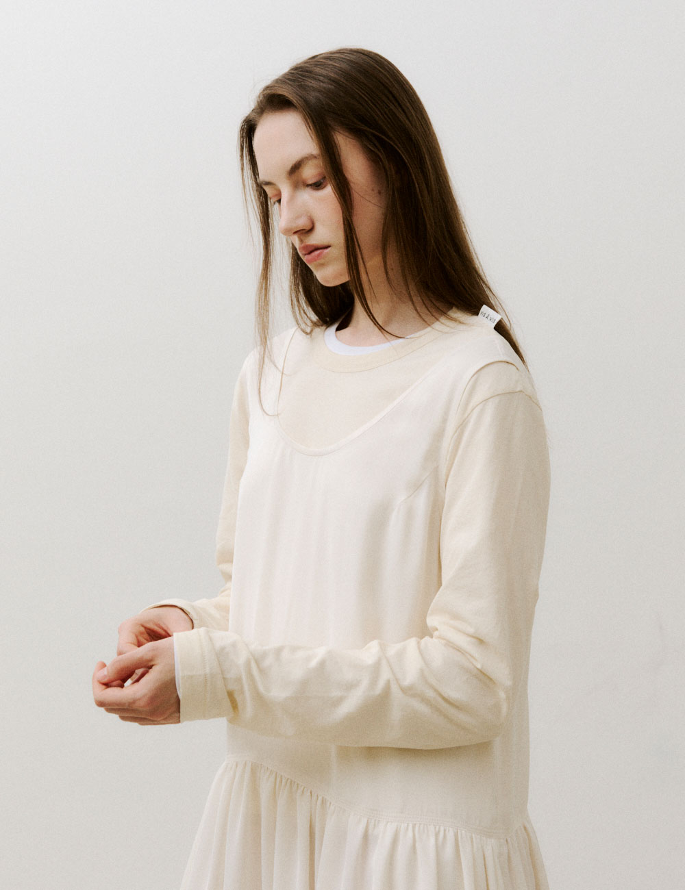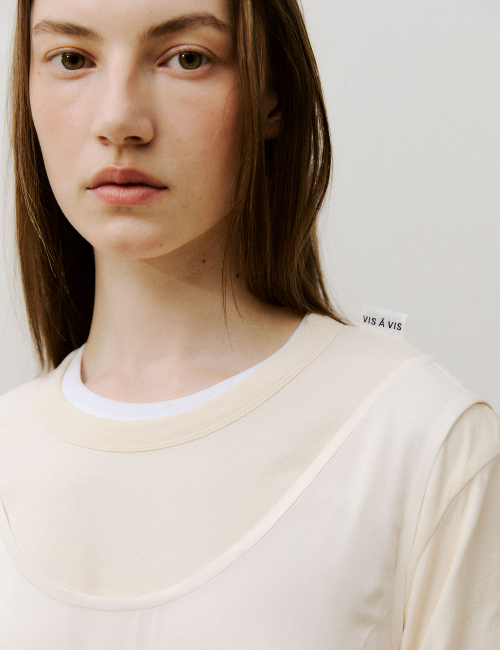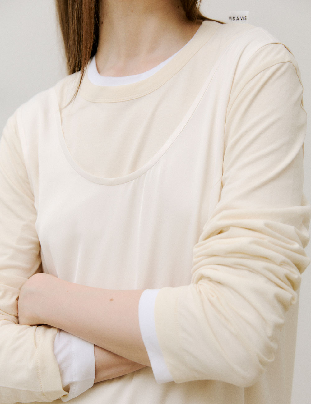 VIS A VIS Cotton Long Sleeved Center Back Seam Tee Shirt Ivory