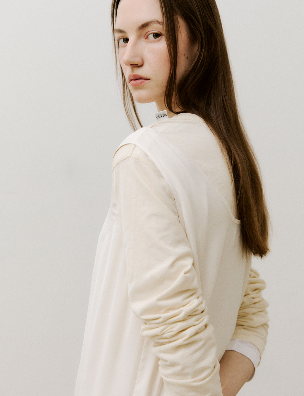 비자비 롱 슬리브 코튼 센터 백 심 티셔츠 아이보리