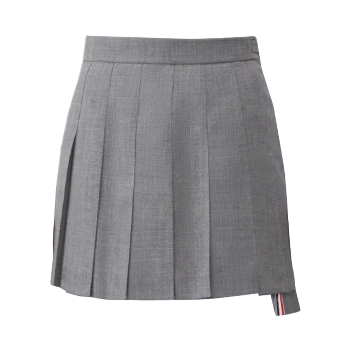(W) Thom Browne Wool Fresco Pleated Mini Skirt Medium Grey
