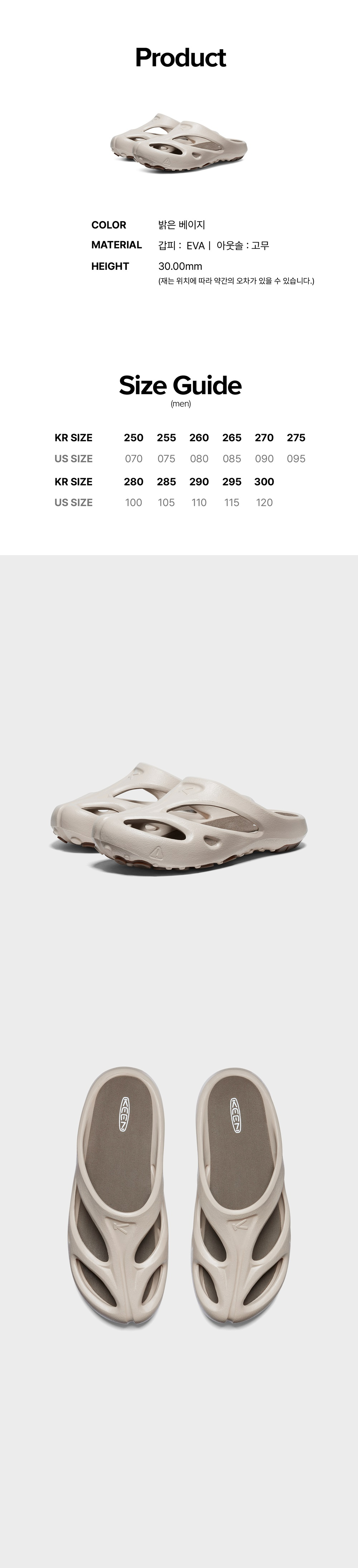 킨 샨티 밝은 베이지 남성 슬라이드