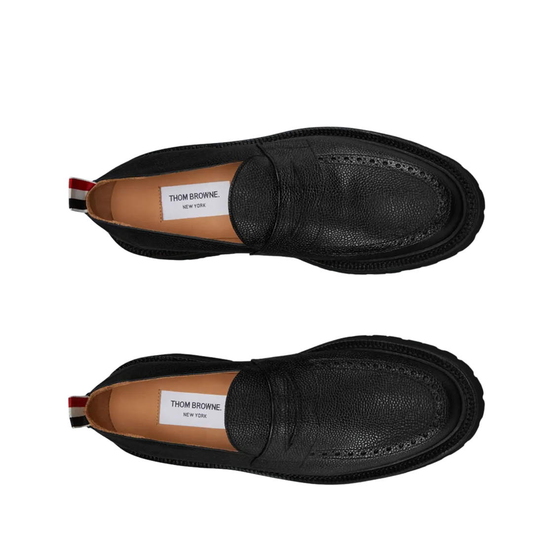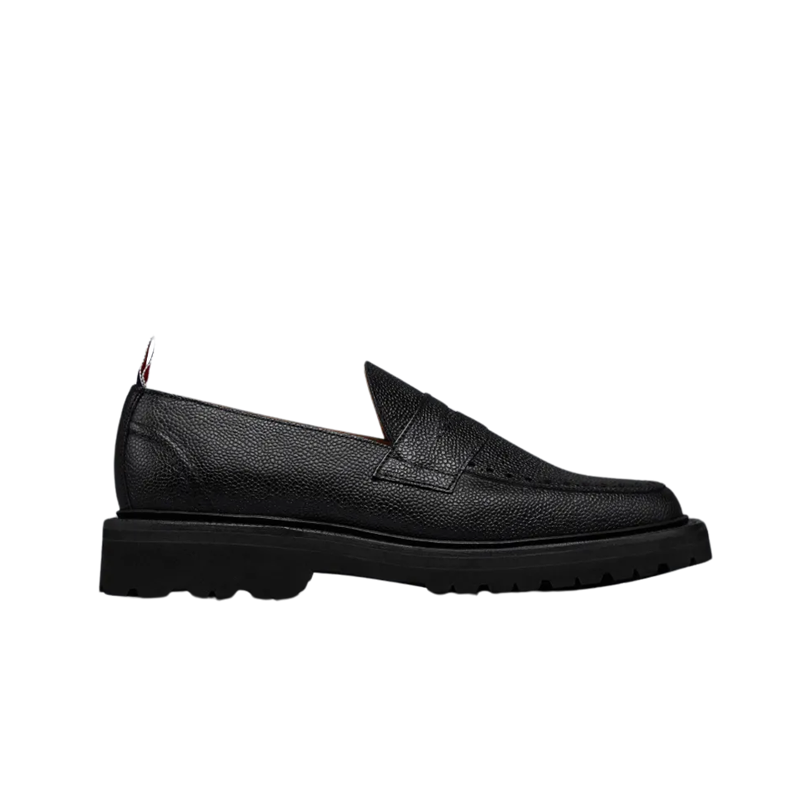 (W) Thom Browne Pebble Grain Leather Commando Sole Penny Loafer Black