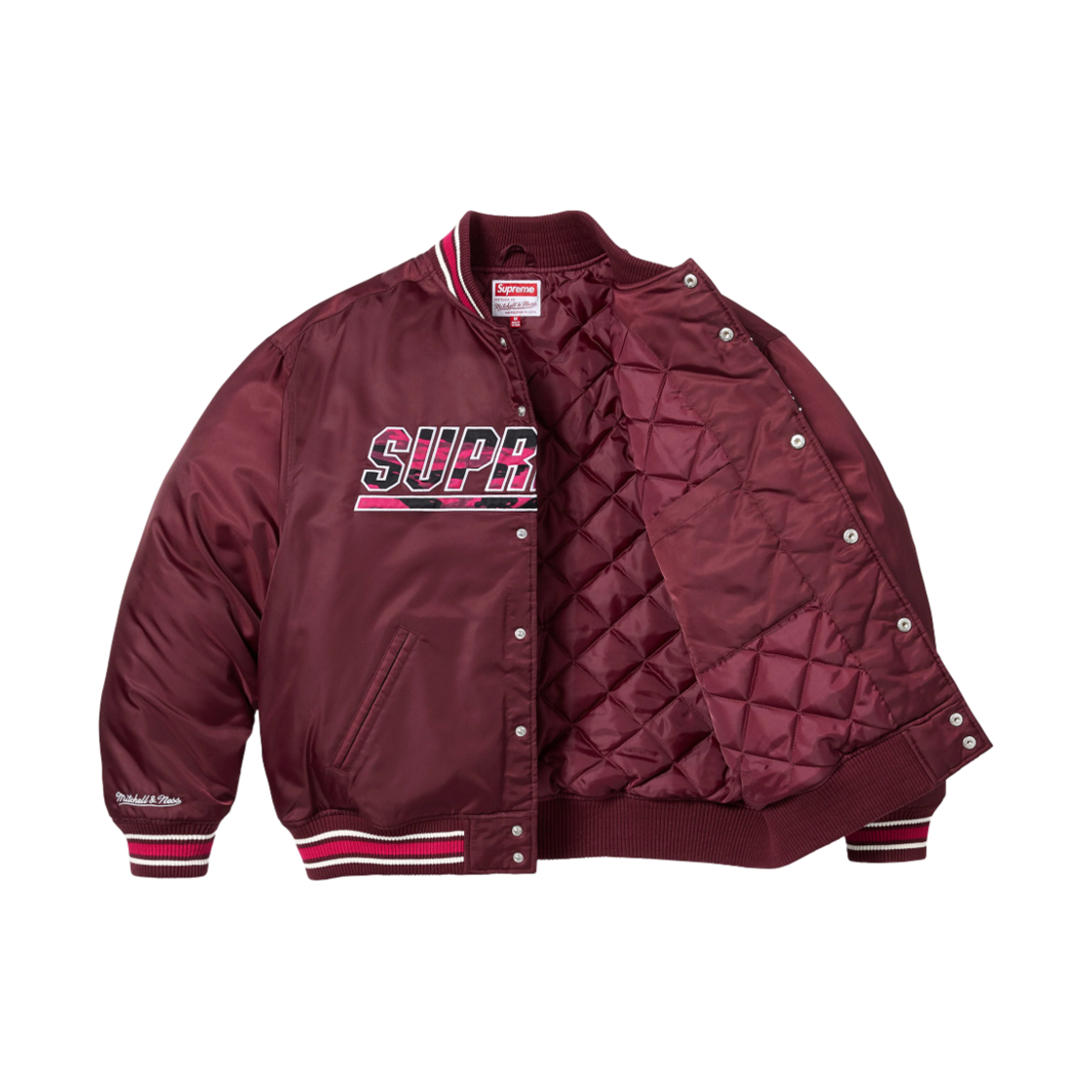 슈프림 미첼 & 네스 카모 로고 바시티 자켓 버건디 - 25SS