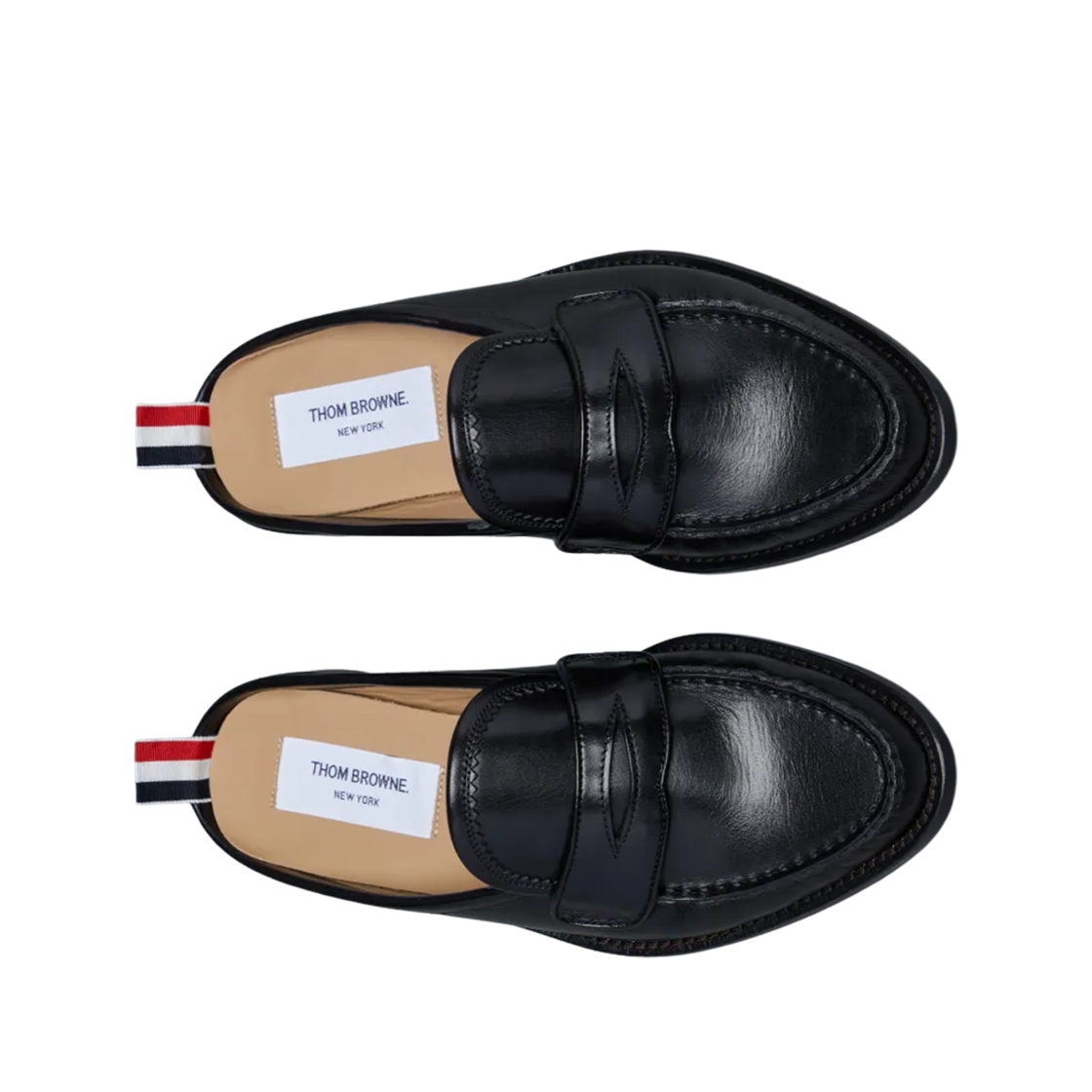 (W) 톰브라운 카프 플렉시블 레더 솔 페니 로퍼 뮬 블랙