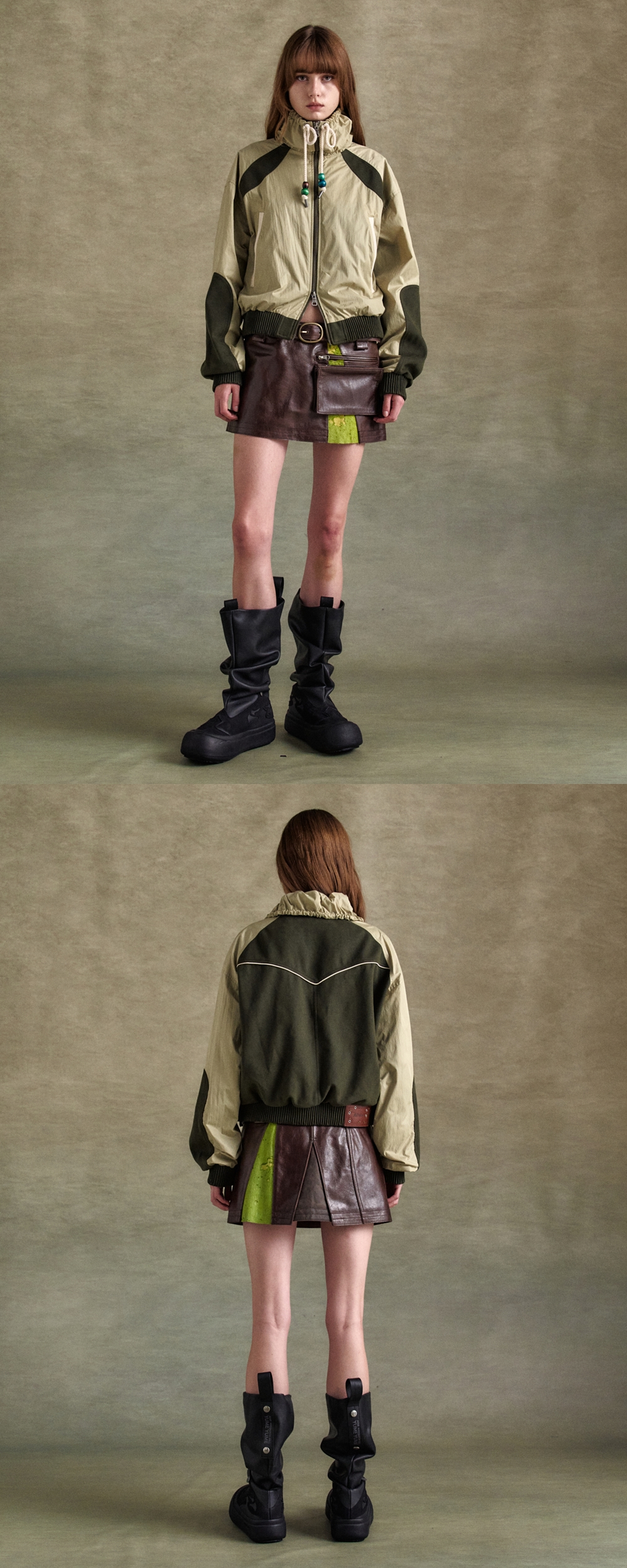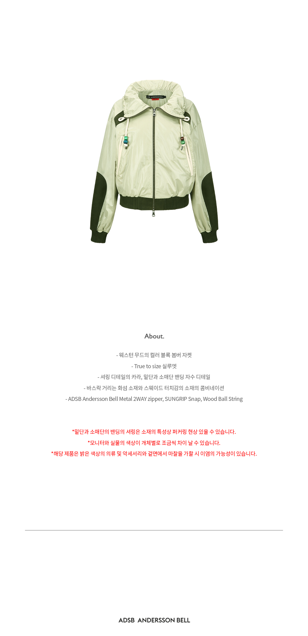 ADSB 앤더슨벨 사디 컬러 블록 봄버 자켓 그린