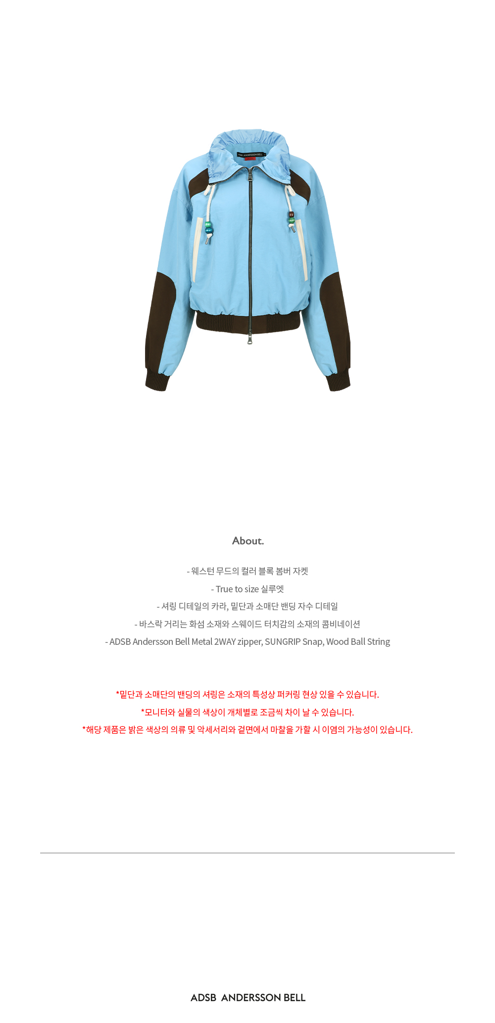ADSB 앤더슨벨 사디 컬러 블록 봄버 자켓 스카이 블루