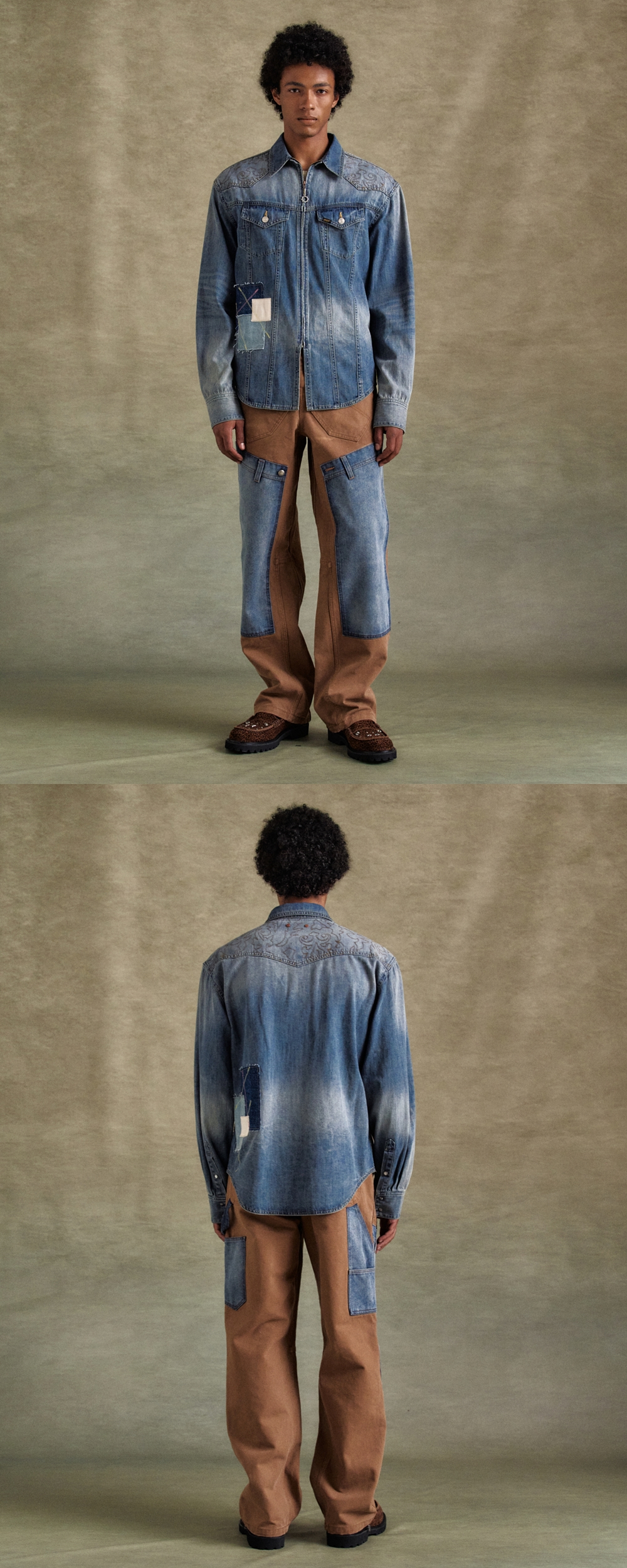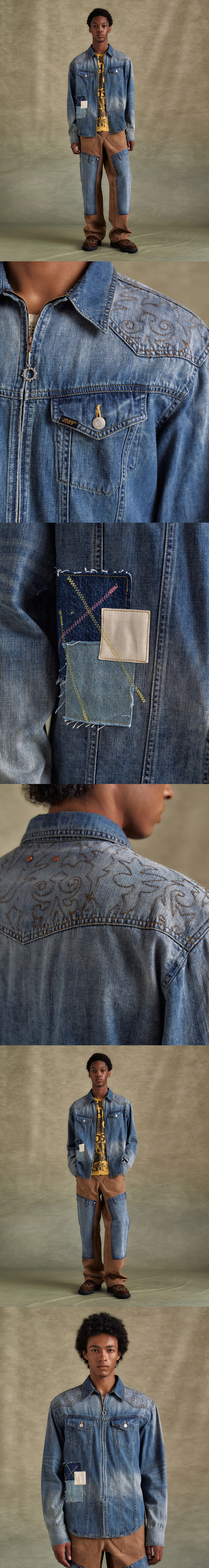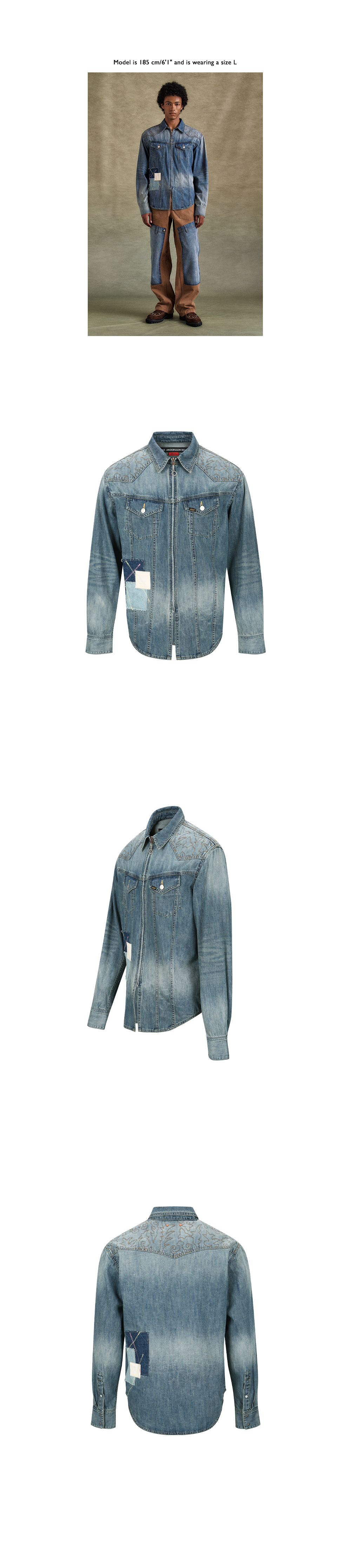 ADSB 앤더슨벨 엠브로이더리 패치워크 데님 셔츠 블루