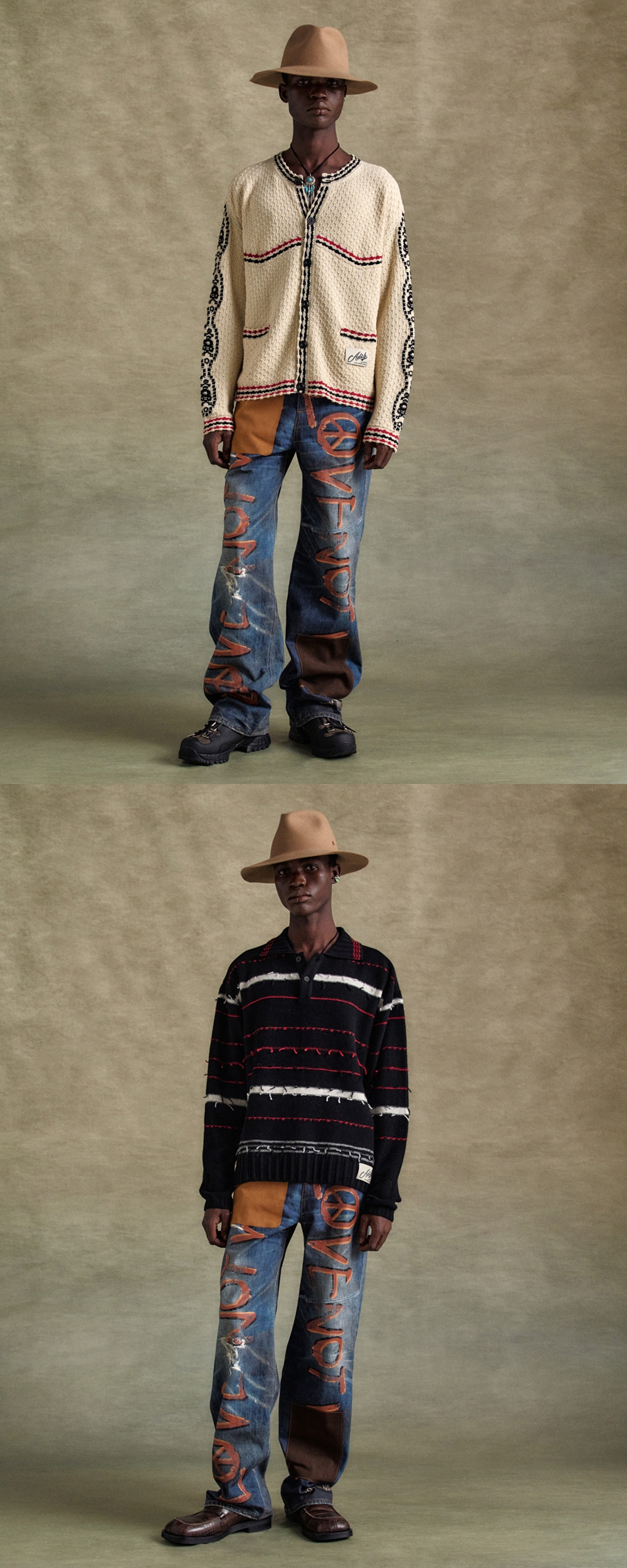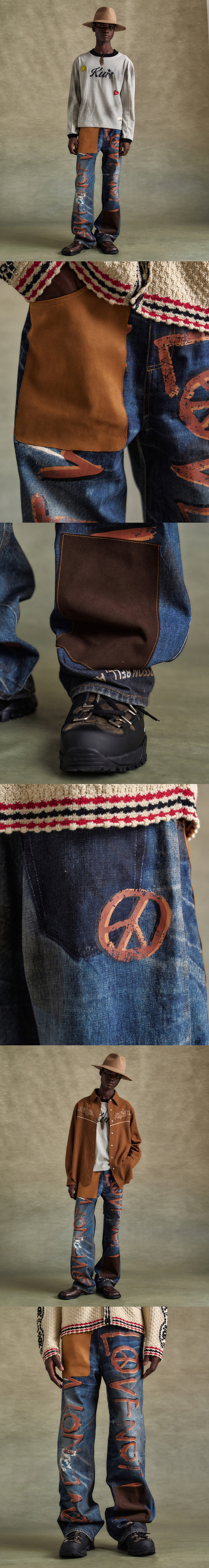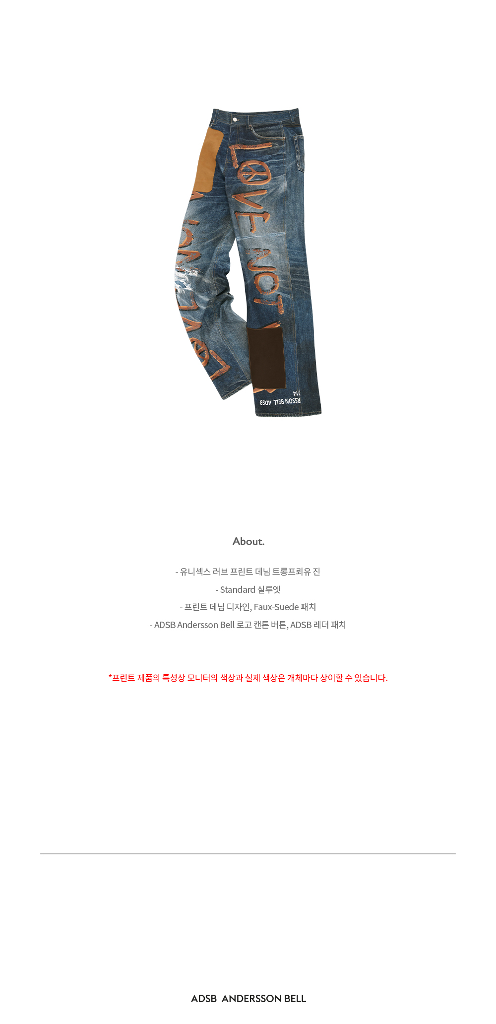 ADSB 앤더슨벨 유니섹스 러브 프린티드 데님 트롱프뤠유 진 블루