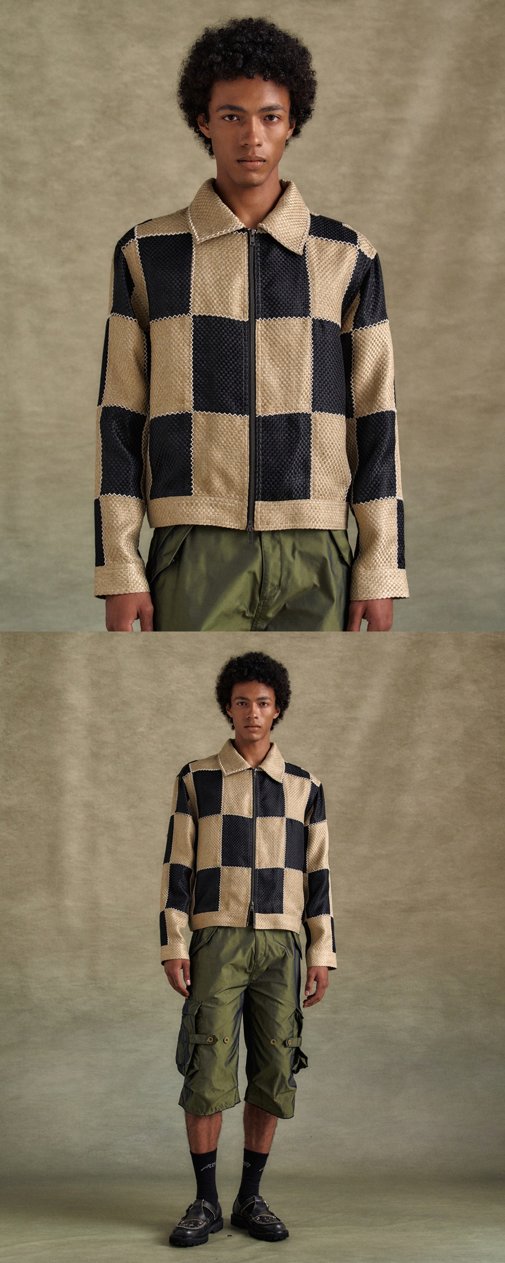 ADSB 앤더슨벨 패치워크 집업 자켓 블랙 베이지