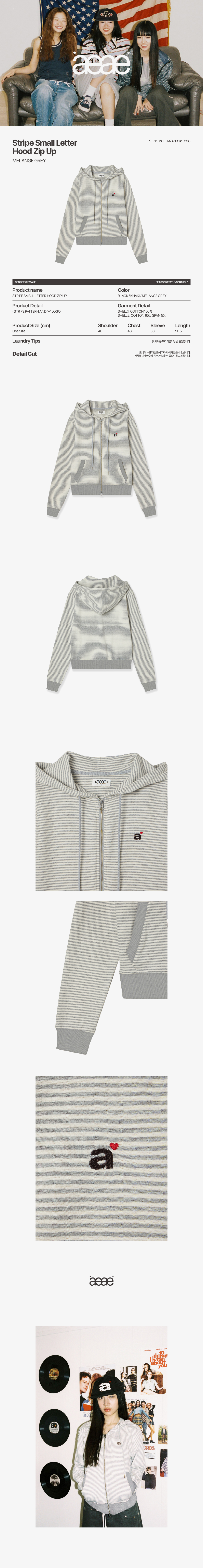 에이이에이이 스트라이프 스몰 레터 후드 집업 멜란지 그레이