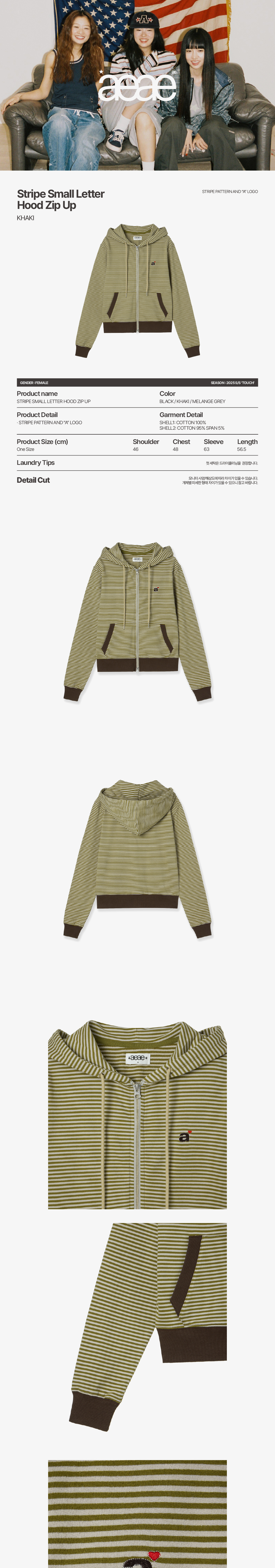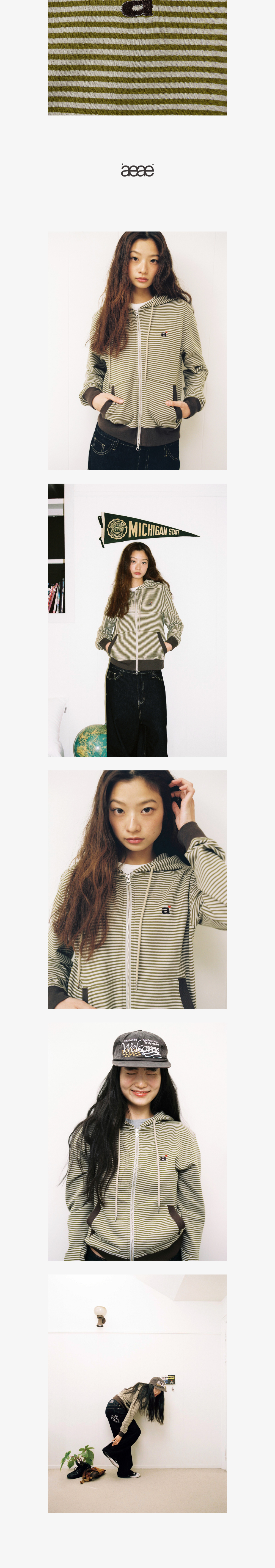 에이이에이이 스트라이프 소문자 후드 집업 카키