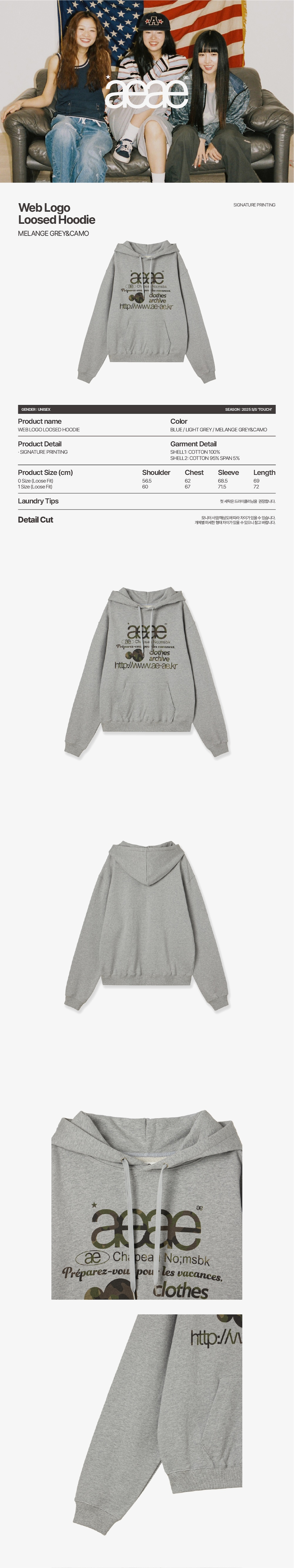 에이이에이이 웹 로고 루즈 후디 멜란지 그레이 & 카모