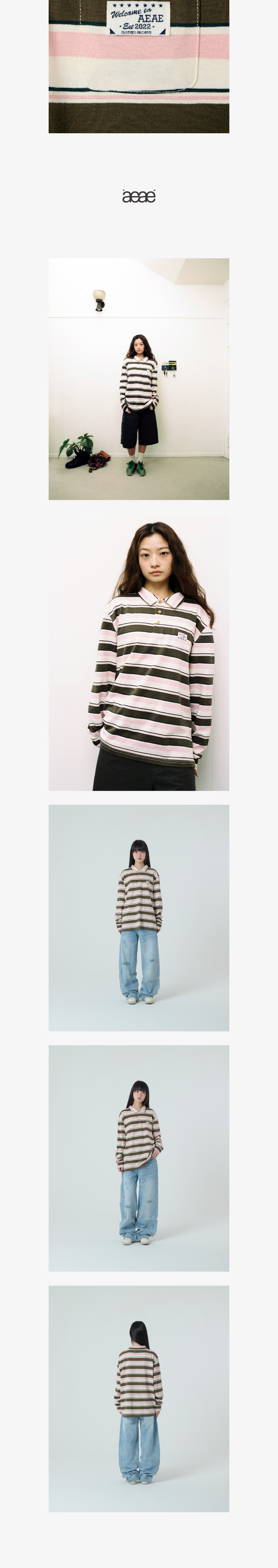 에이이에이이 스트라이프 피케 티셔츠 핑크