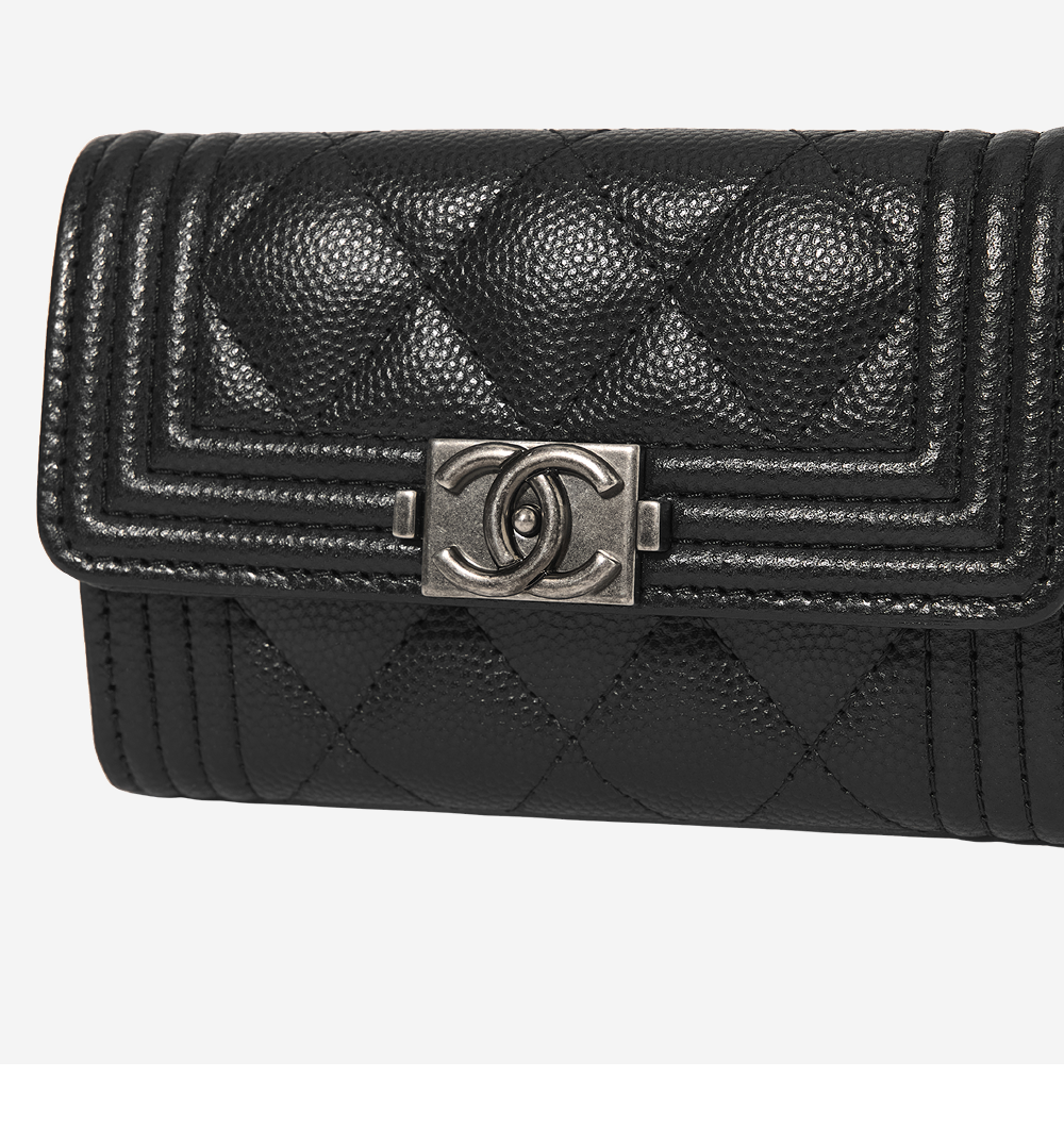 샤넬 보이 샤넬 플랩 카드 홀더 그레인드 카프스킨 & 루테늄 메탈 블랙