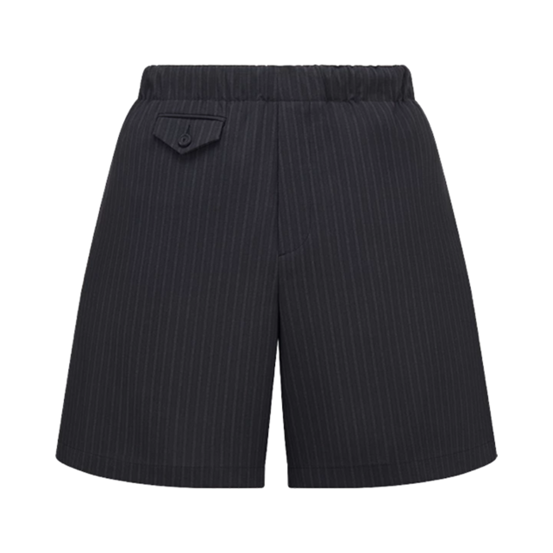 디올 스트레치 엘라스틱 웨이스트 스트라이프 울 버뮤다 쇼츠 블랙