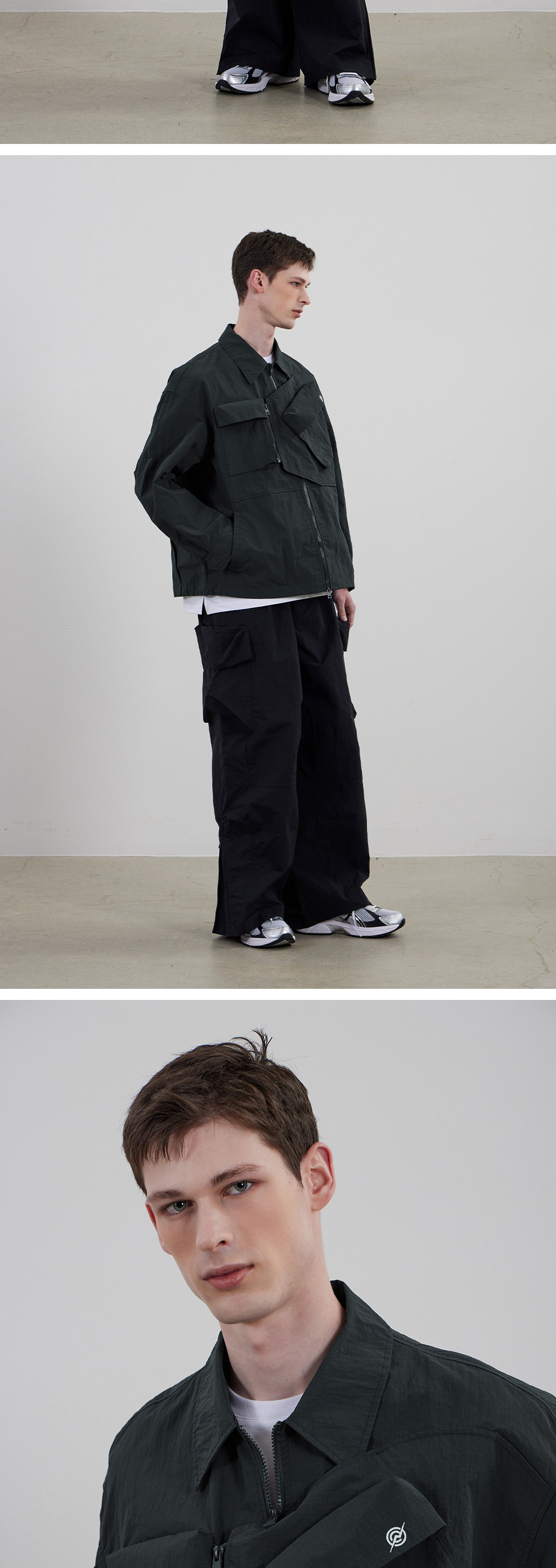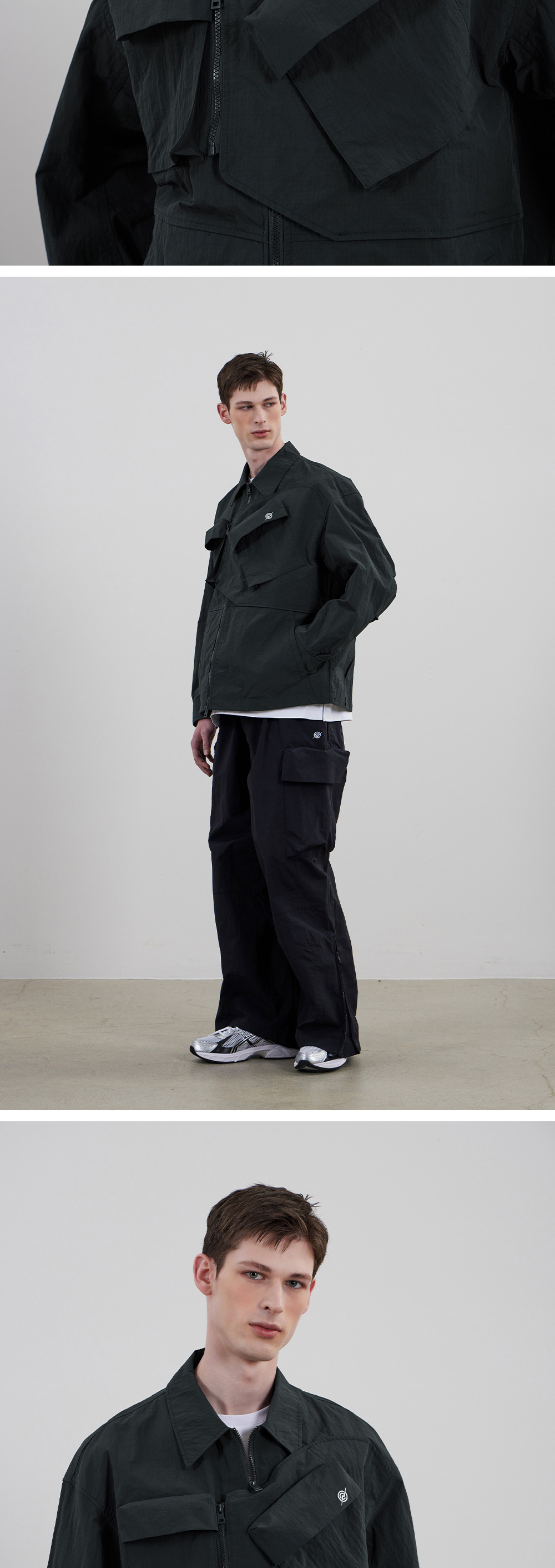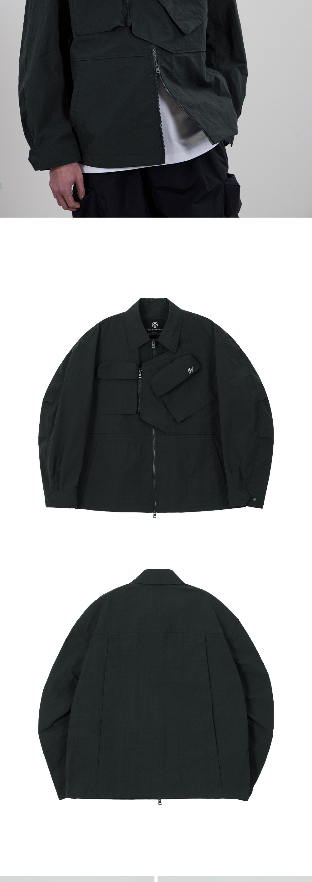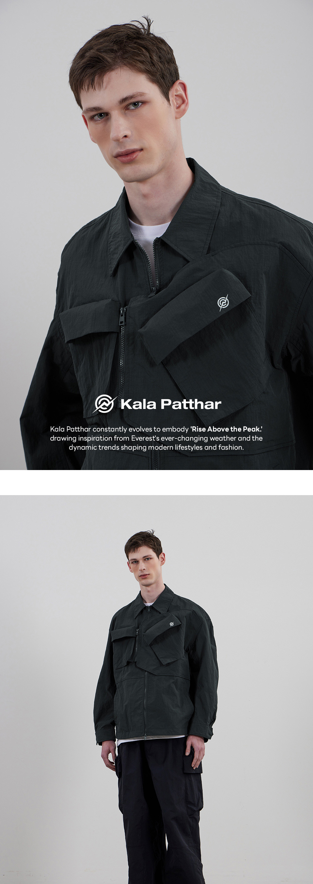 칼라파타르 나일론 오프셋 집 포켓 셔츠 자켓 딥그레이