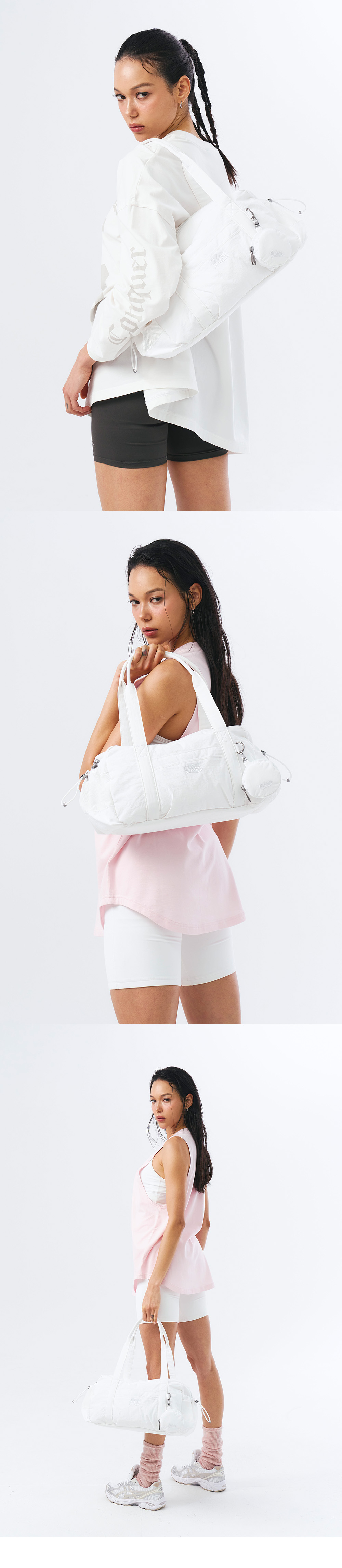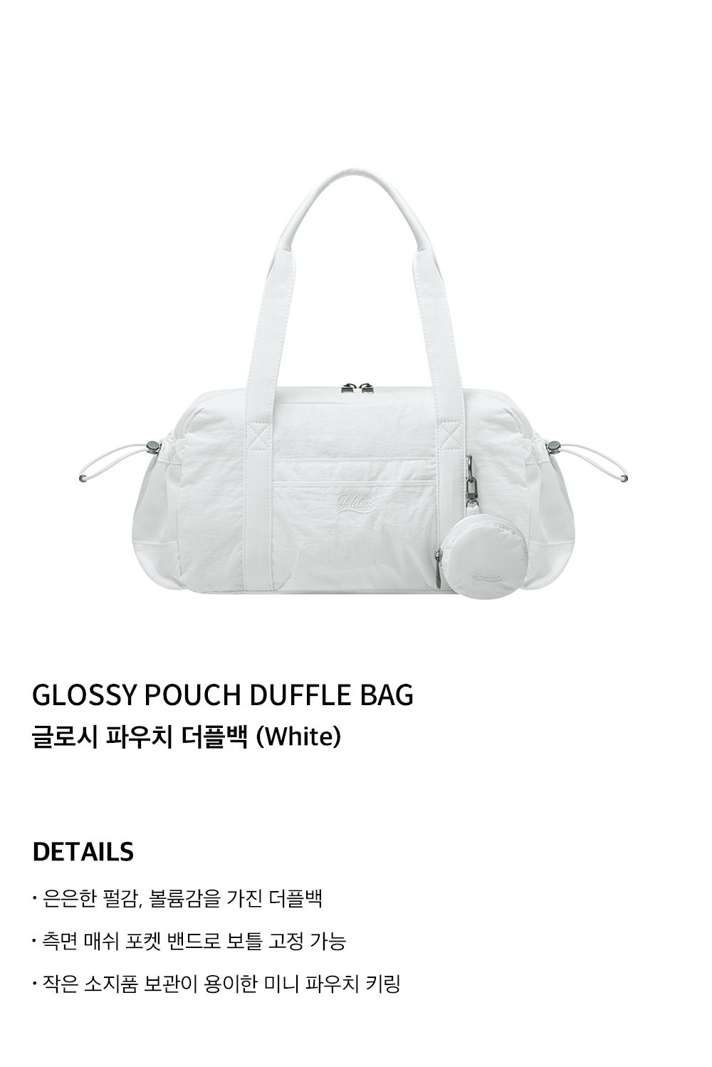 에이치덱스 글로시 파우치 더플백 화이트