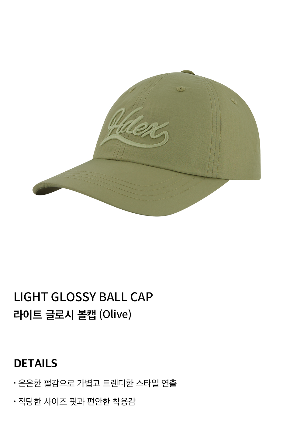 에이치덱스 라이트 글로시 볼캡 올리브