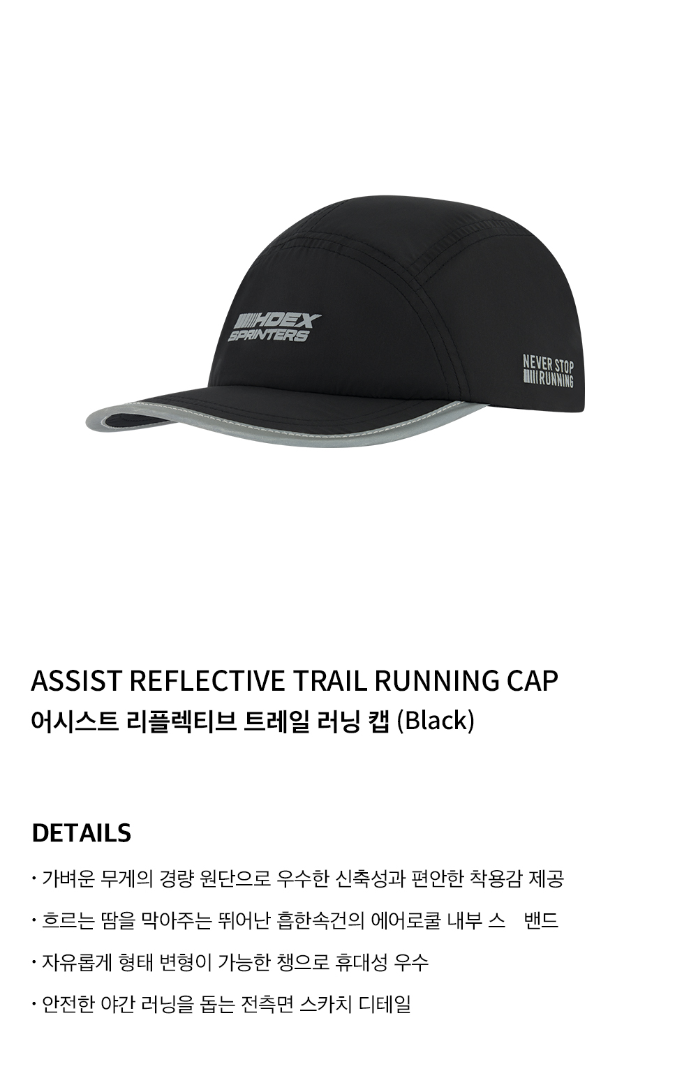 에이치덱스 어시스트 리플렉티브 트레일 러닝 캡 블랙