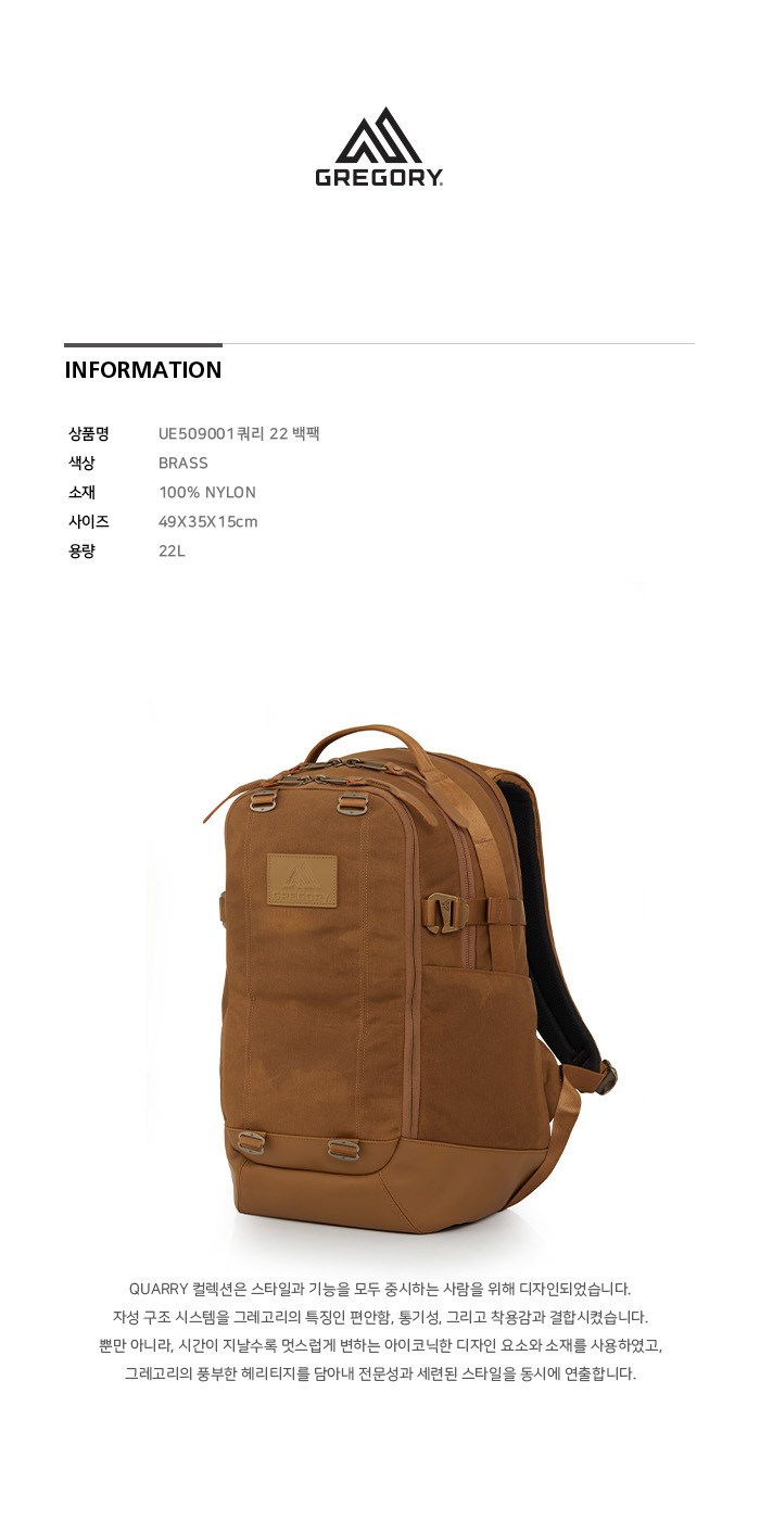 그레고리 쿼리22 프리미엄 백팩 브라스