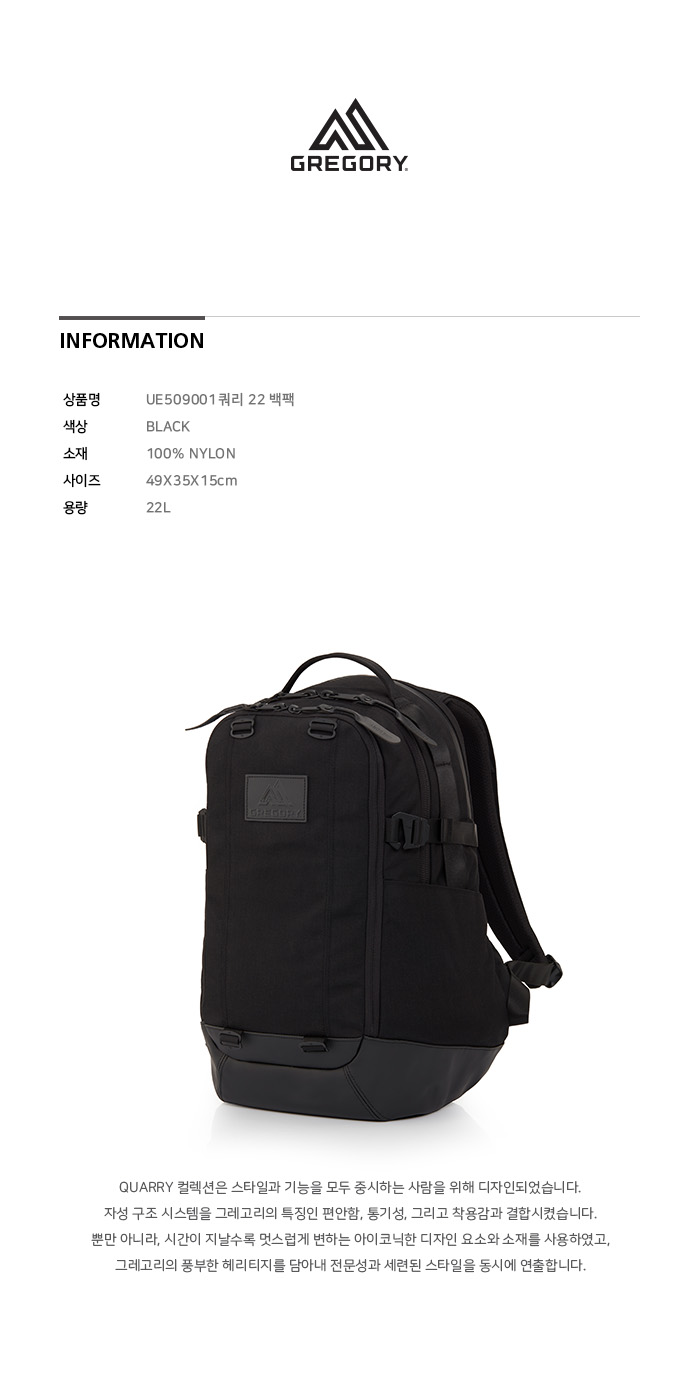 그레고리 쿼리22 프리미엄 백팩 블랙