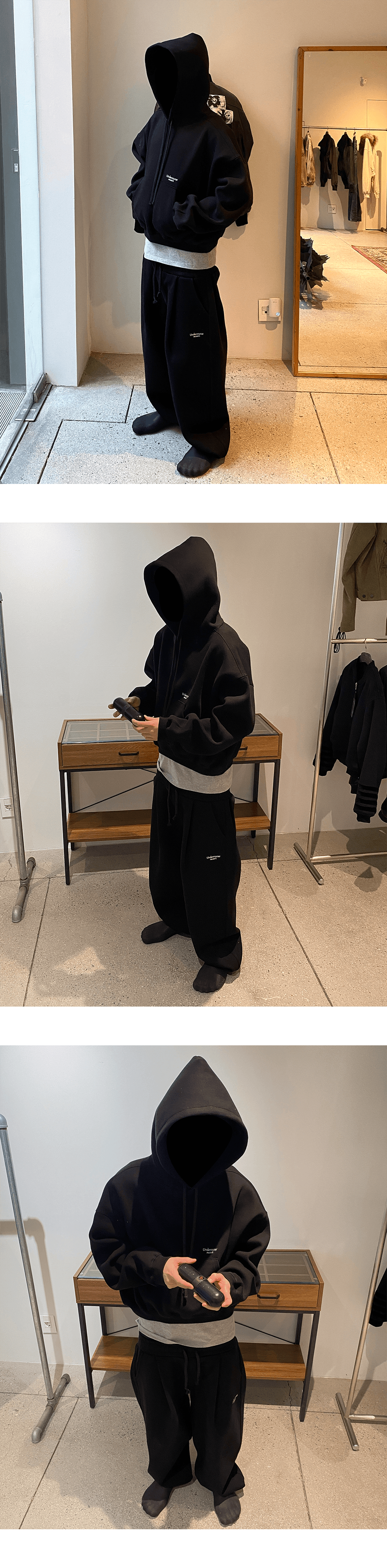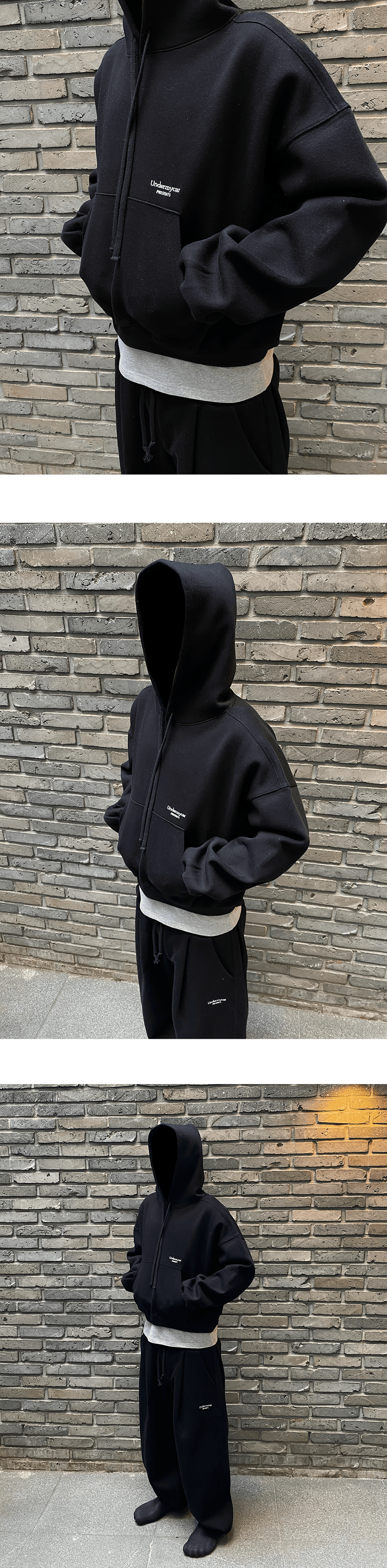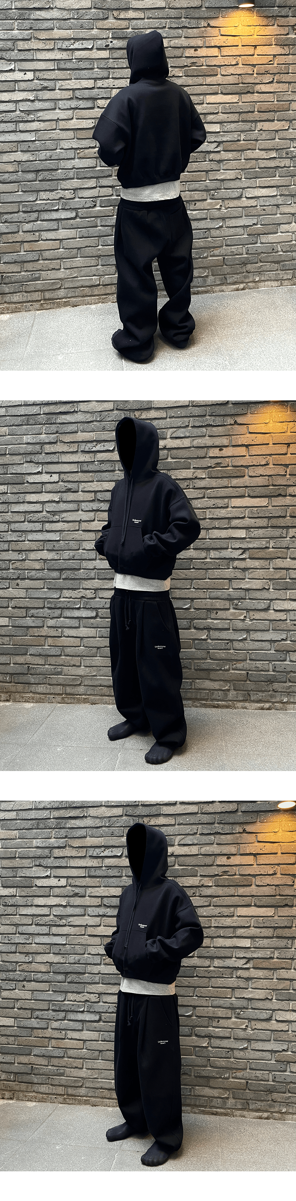 언더마이카 무.97 안티 Fxxking 로고 플레이 오버사이즈 본디드 스웻 셋업 (후드티, 조거팬츠) - 블랙