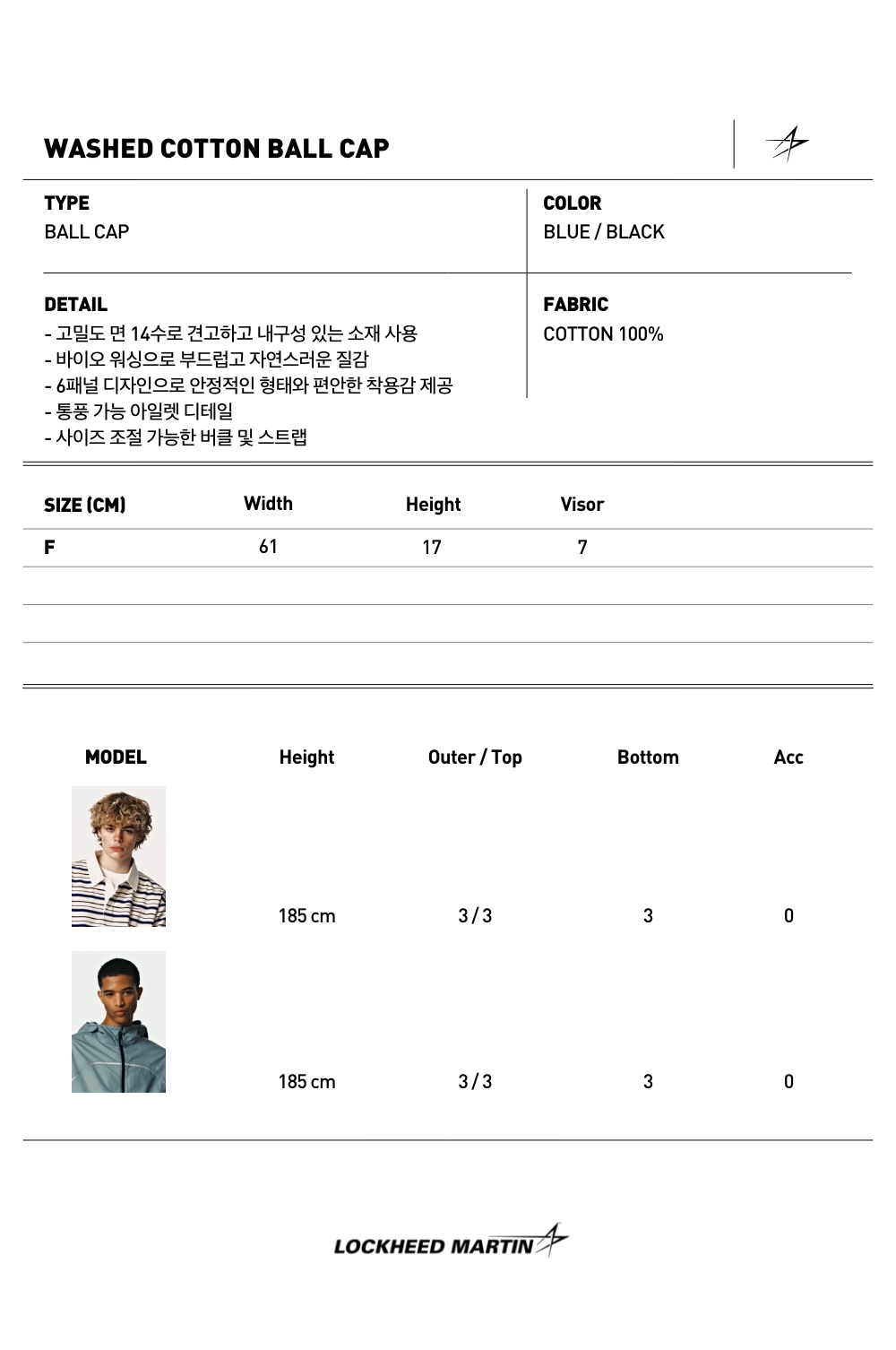 록히드마틴 워시드 코튼 볼 캡 블루