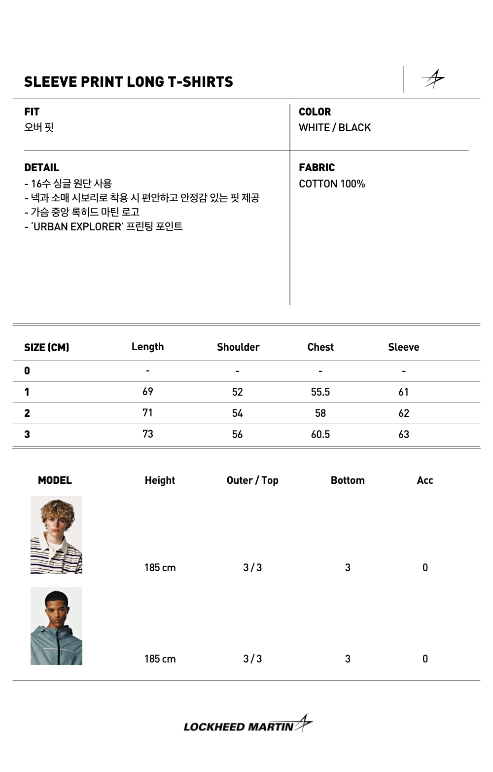 록히드마틴 슬리브 프린트 롱 티셔츠 화이트