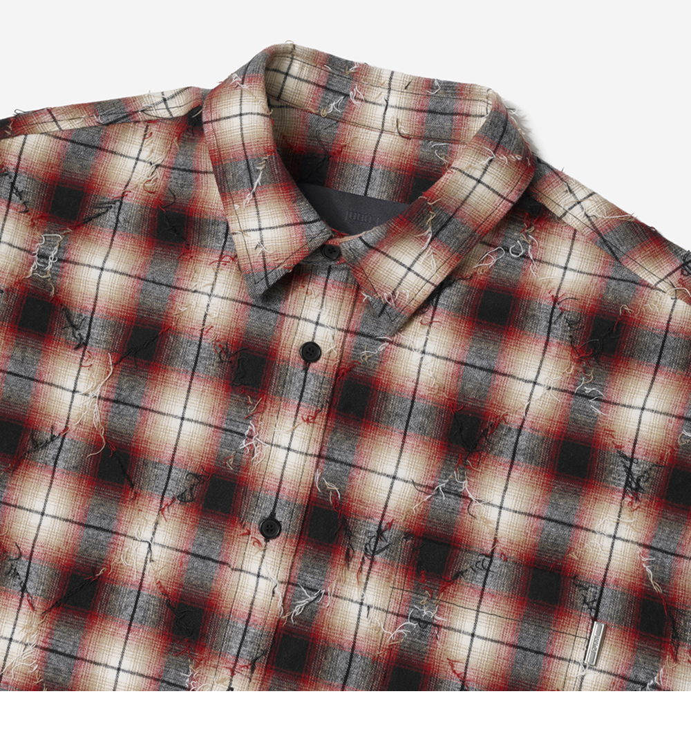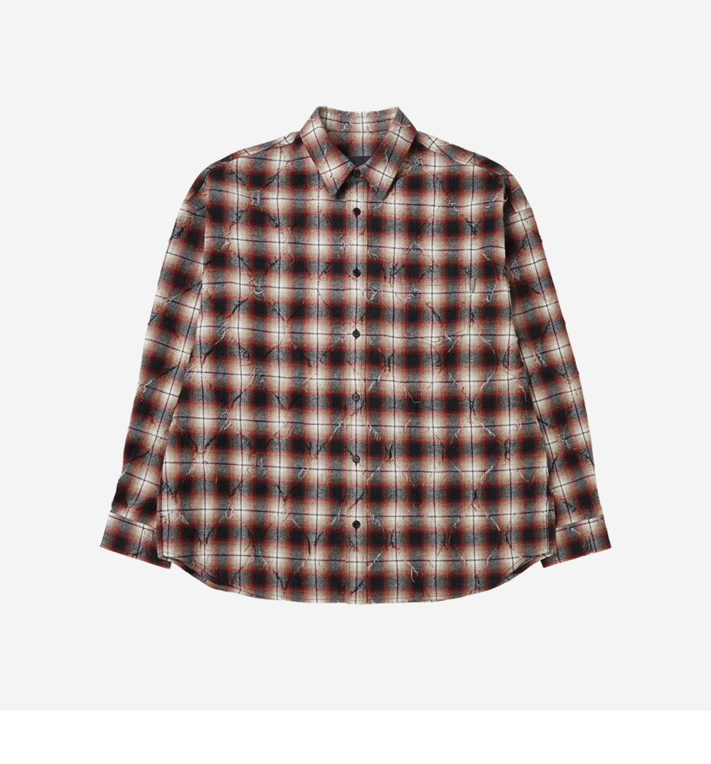 준지 아가일 데미지 체크 루즈핏 셔츠 레드 - 25SS