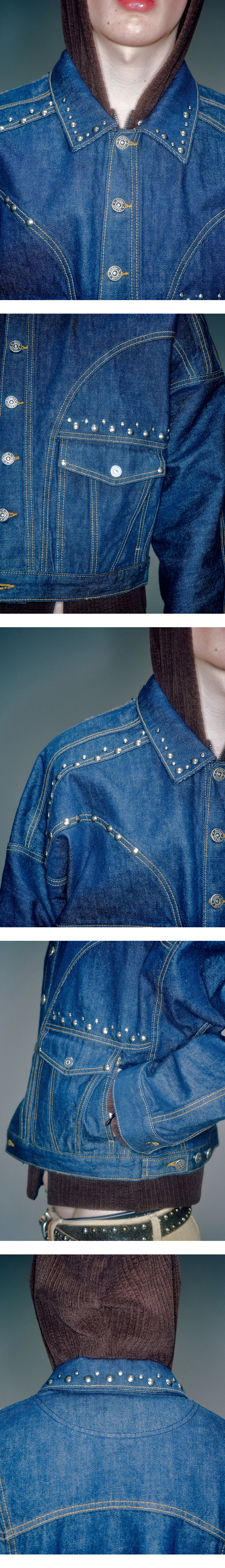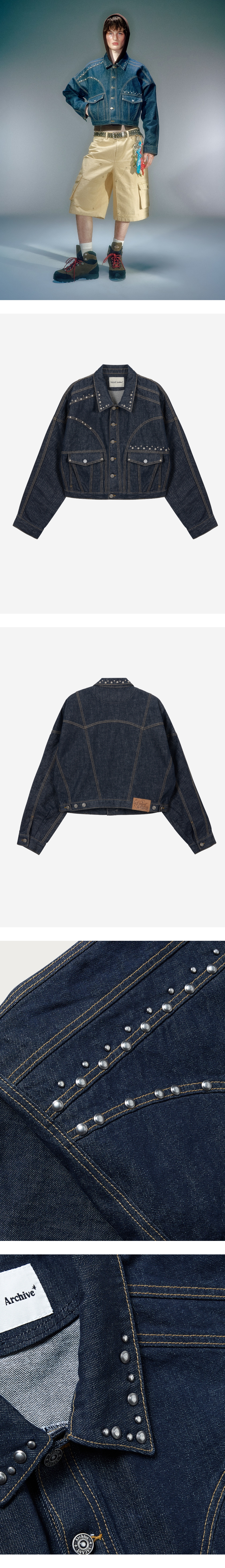 베이컨트 아카이브 리암 스터드 데님 자켓 딥 블루