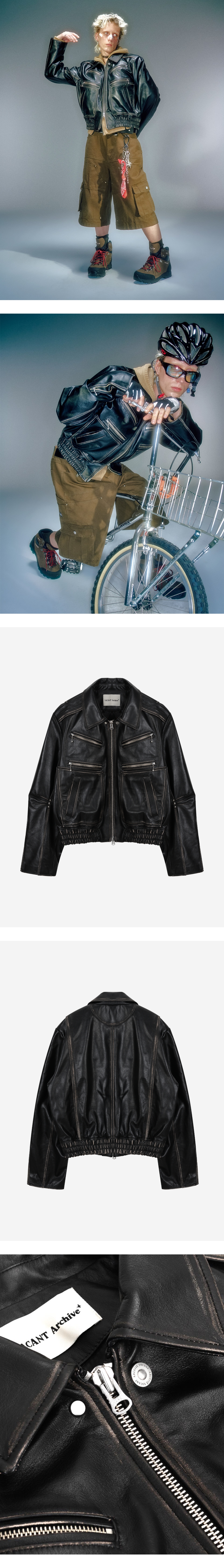 베이컨트 아카이브 데렉 레더 블루종 자켓 블랙