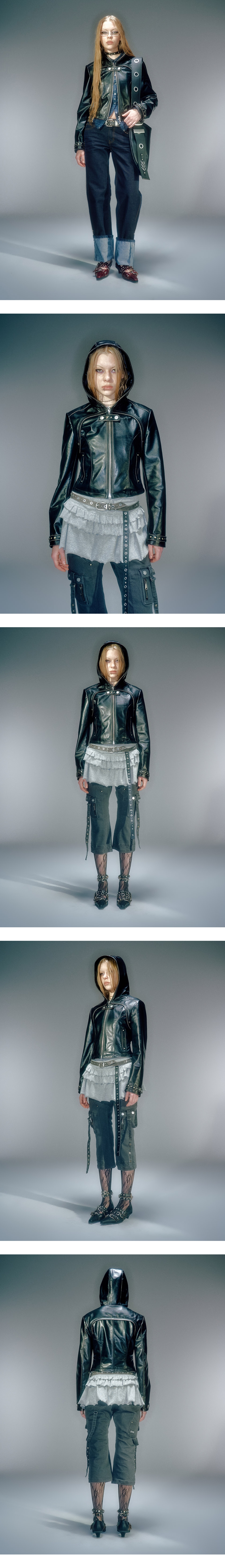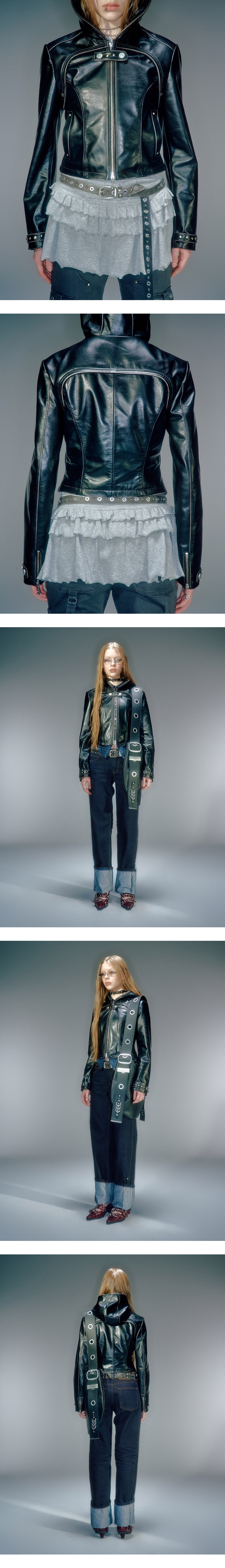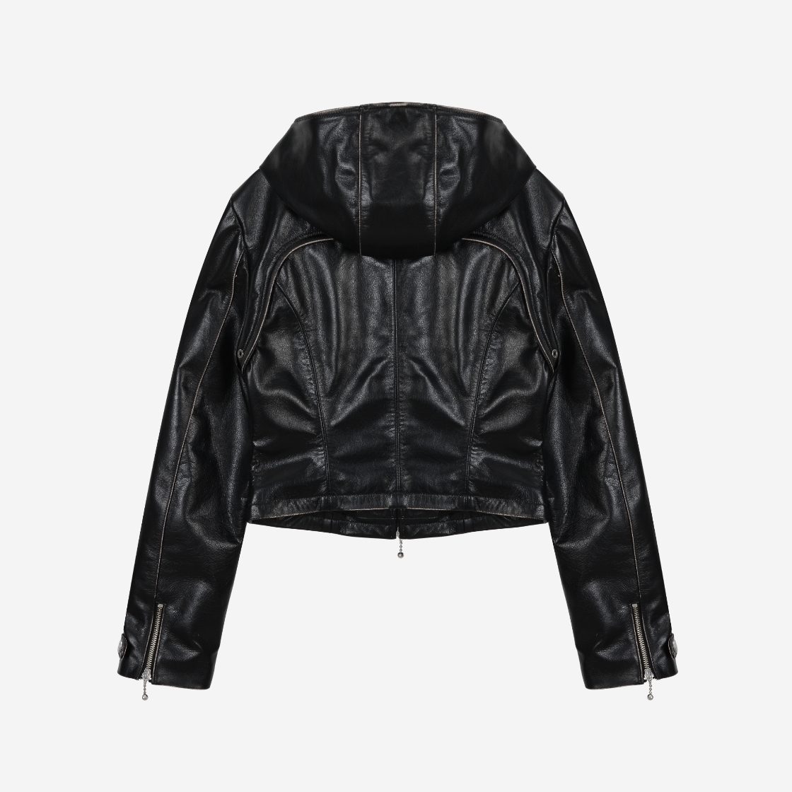 Vacant Archive Hanco Leather Hoodie Jacket Black