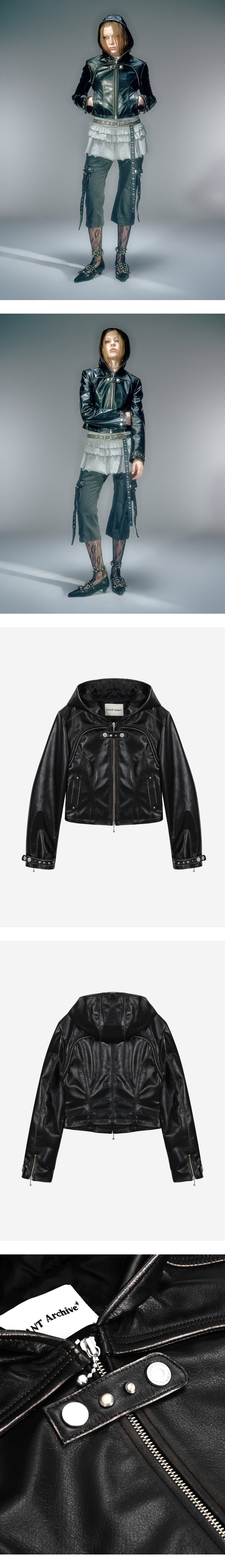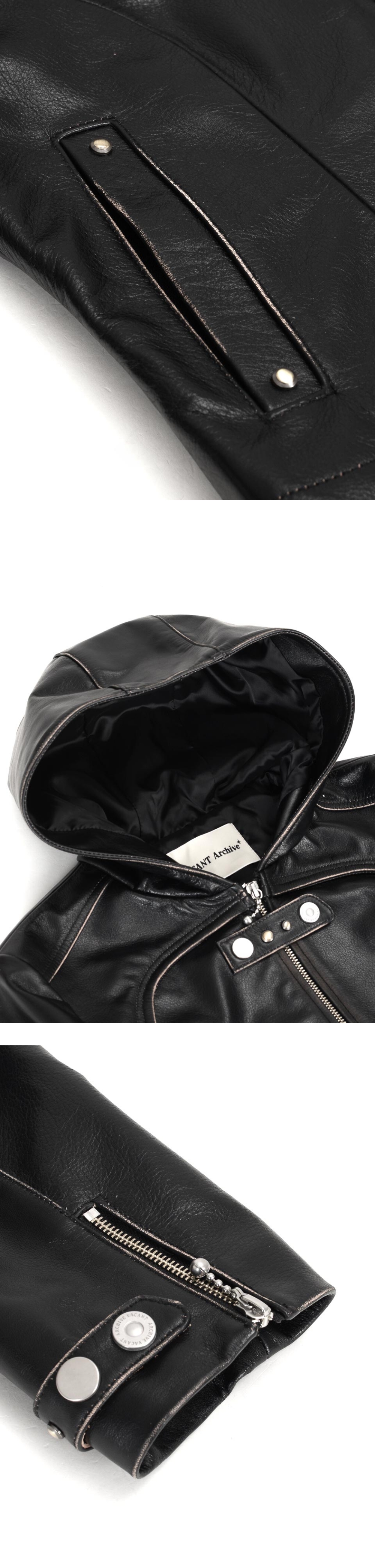 베이컨트 아카이브 핸코 레더 후디 자켓 블랙