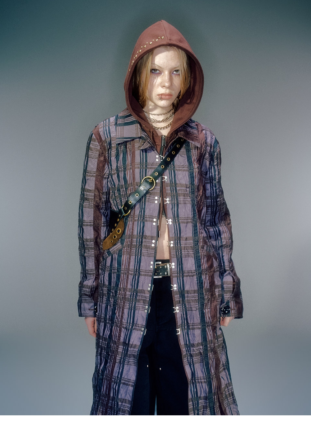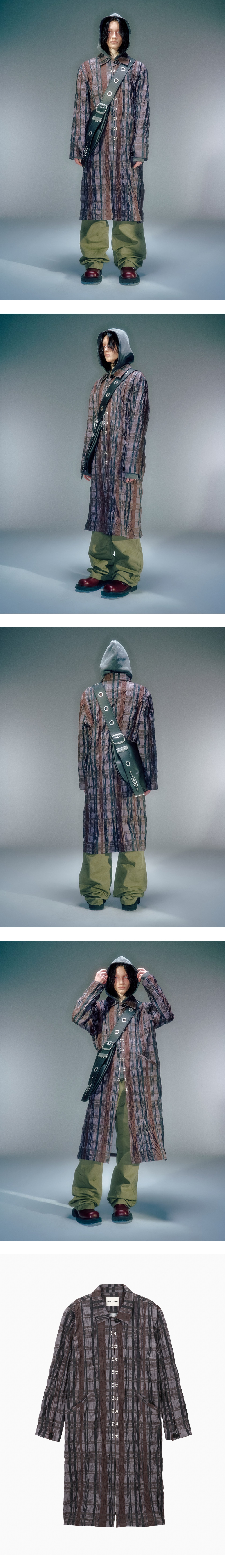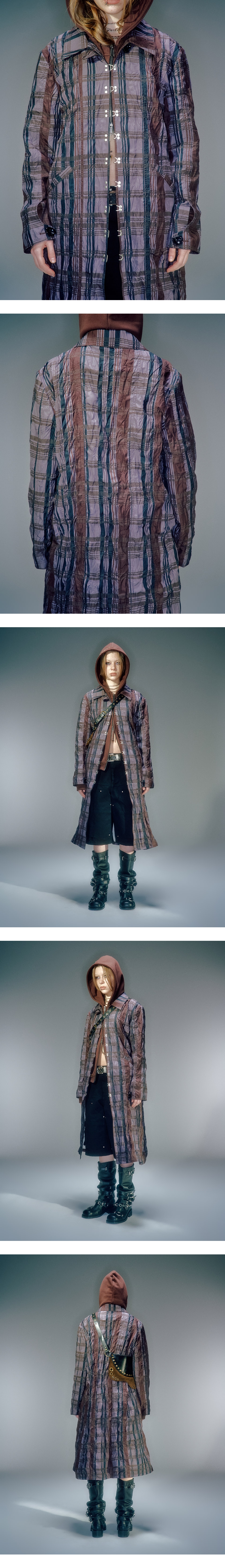 베이컨트 아카이브 하디드 체크 링클 훅 코트 브라운