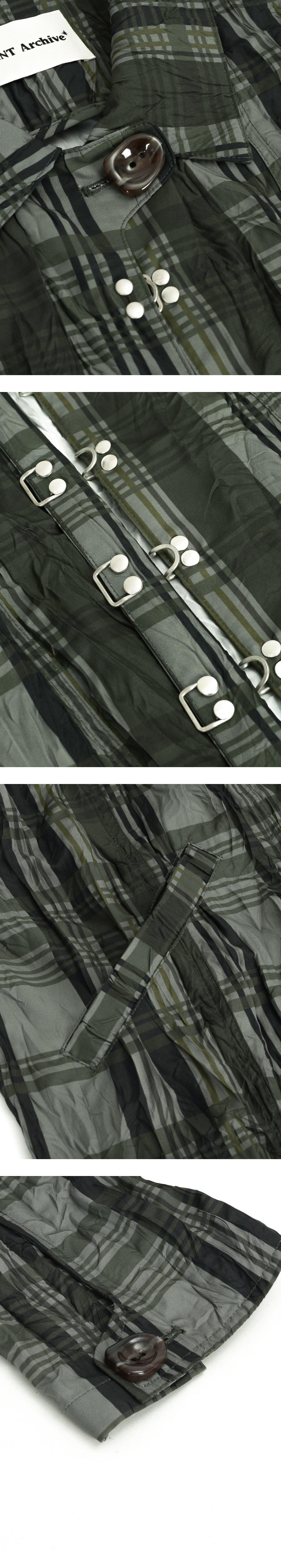 베이컨트 아카이브 하디드 체크 링클 훅 코트 올리브