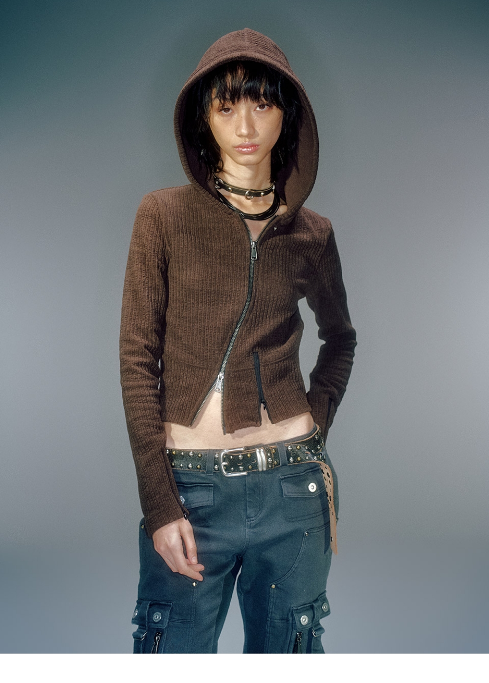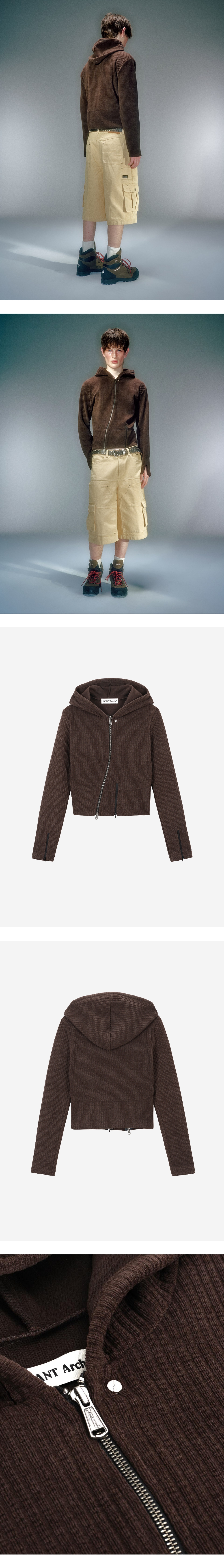 Vacant Archive Moro Ribbed Hood Zip-Up Brown