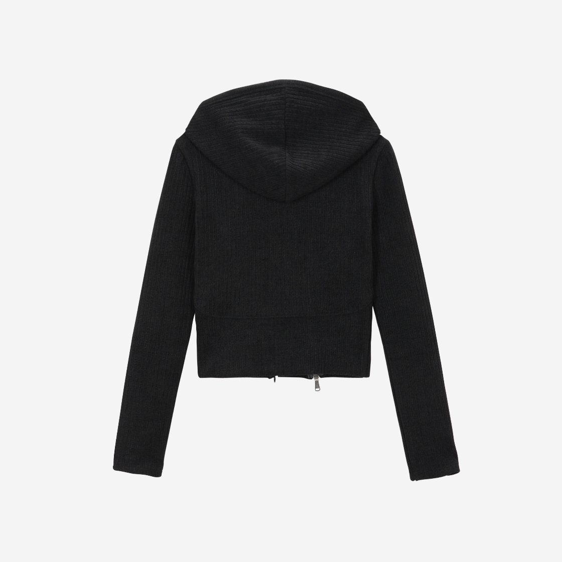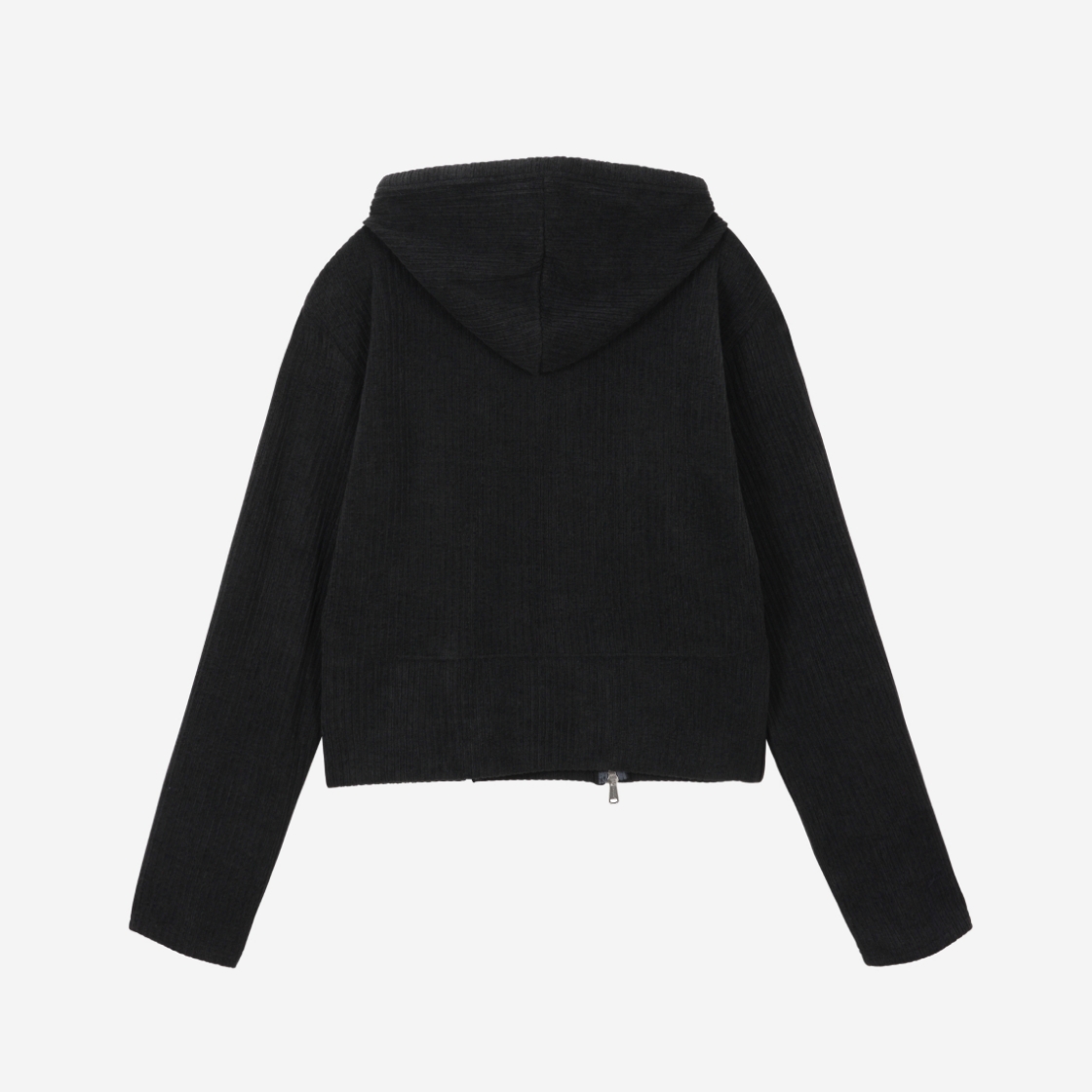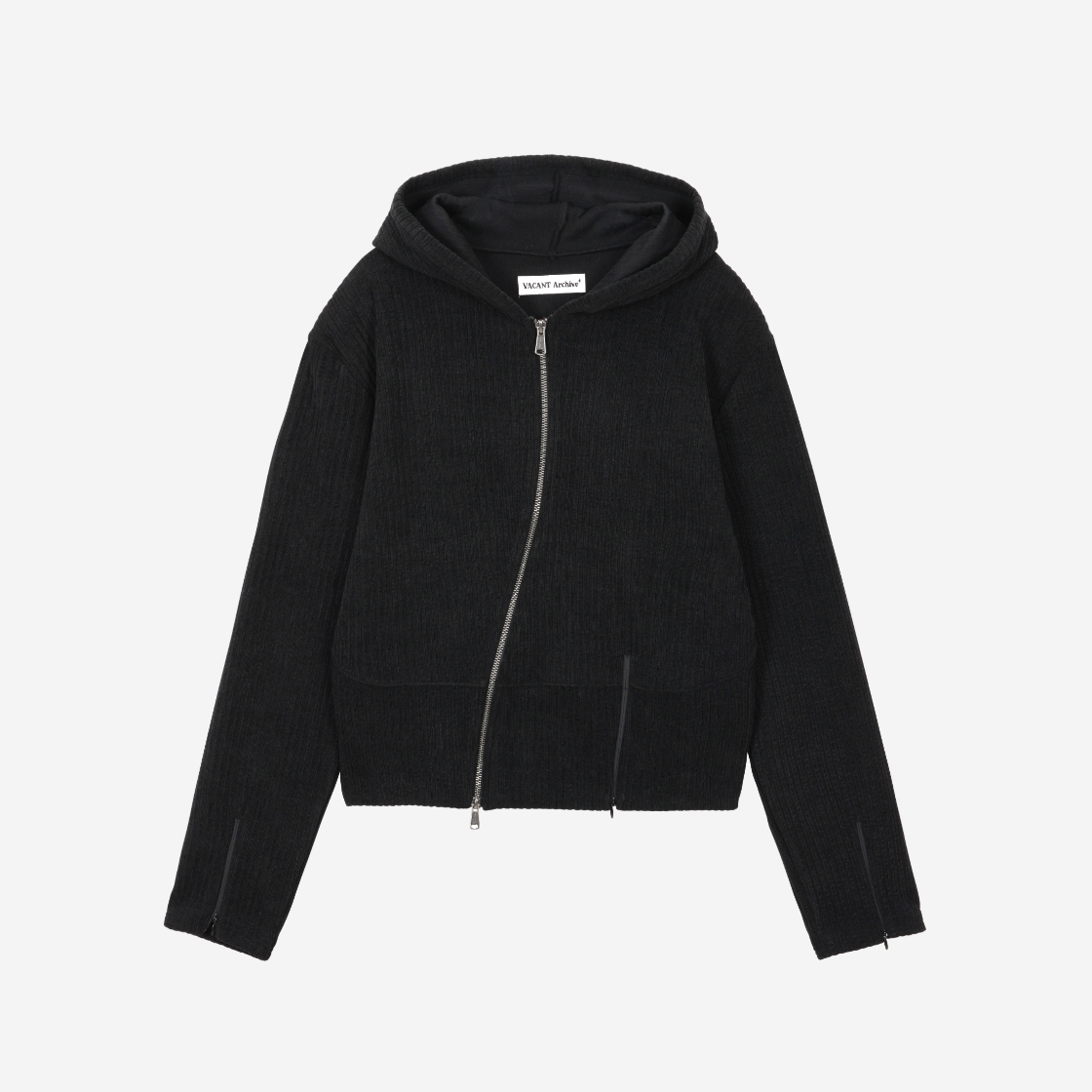 Vacant Archive Moro Ribbed Hood Zip-Up Black