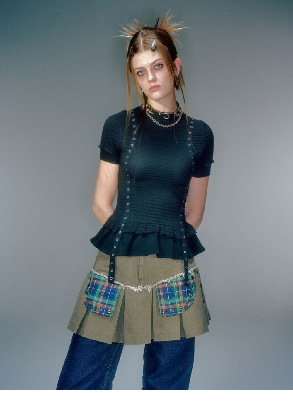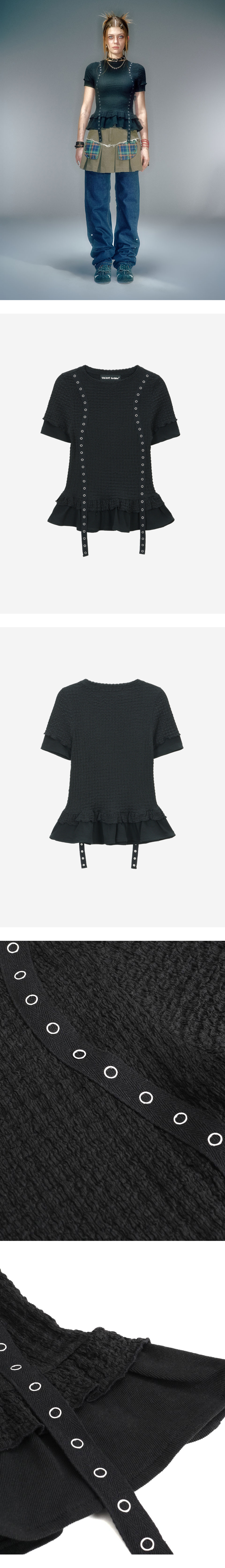 베이컨트 아카이브 에델 레이어드 셔링 티셔츠 블랙