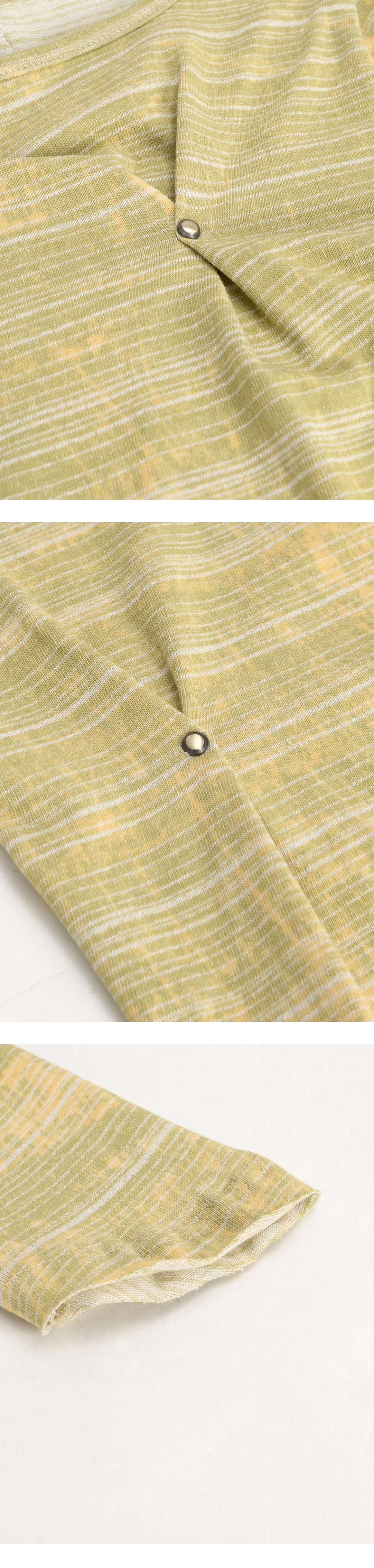 특수사 염색과 워싱한 스트라이프 보트넥 티셔츠 베이컨트 제작 리벳으로 포인트 소매단, 밑단 데끼 재단으로 빈티지한 무드 연출 베이컨트 메인라벨 노출 봉제
