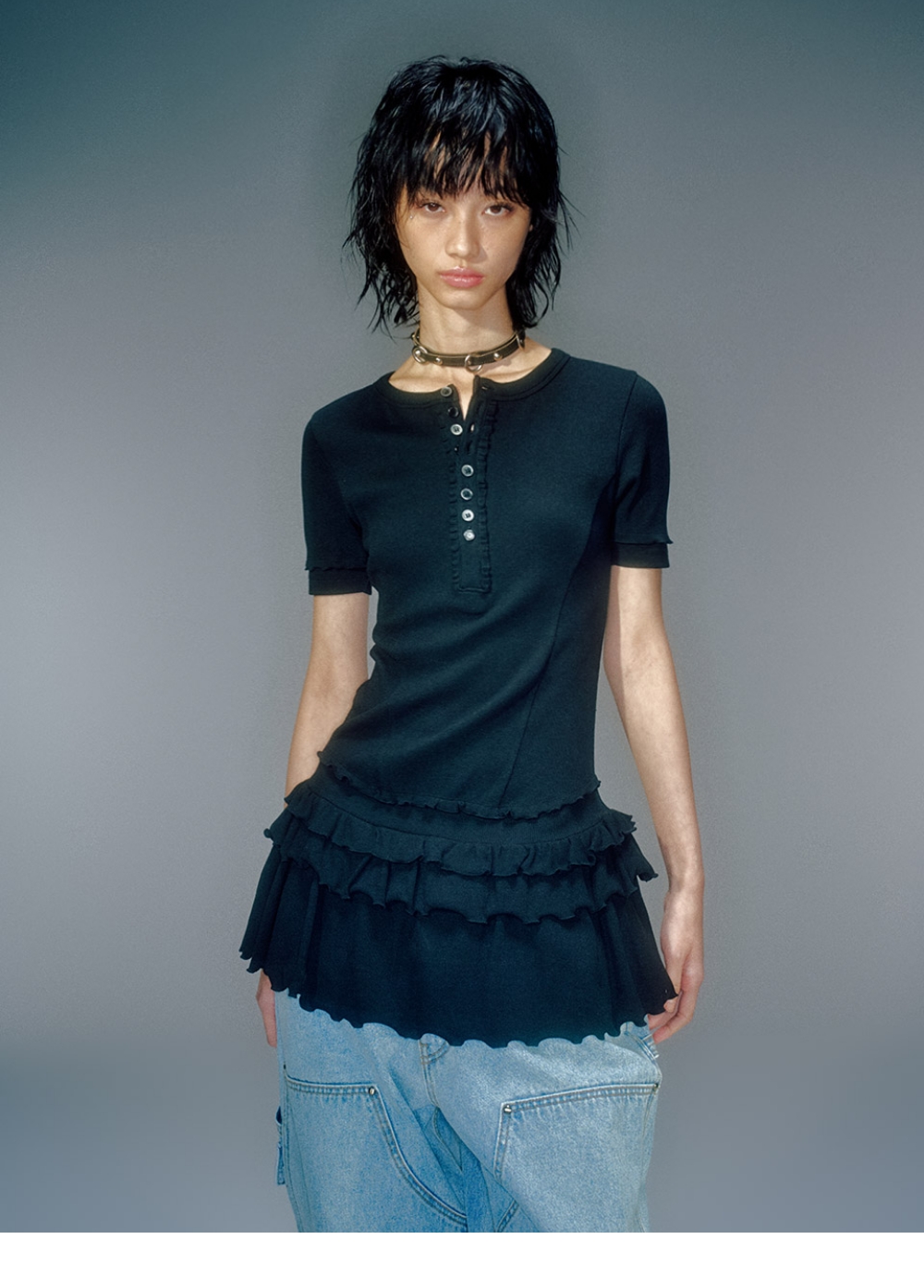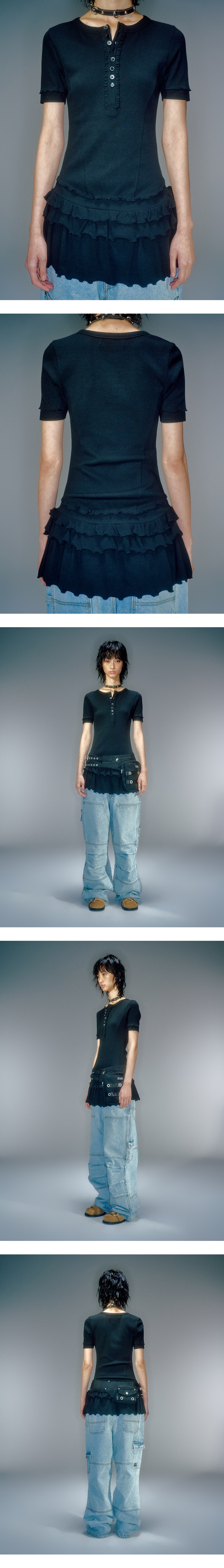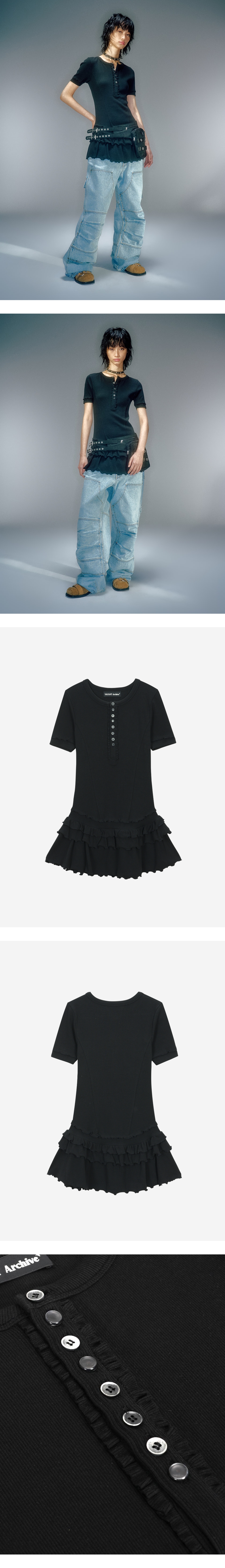베이컨트 아카이브 포니아 프릴 레이어드 원피스 라이트 블랙