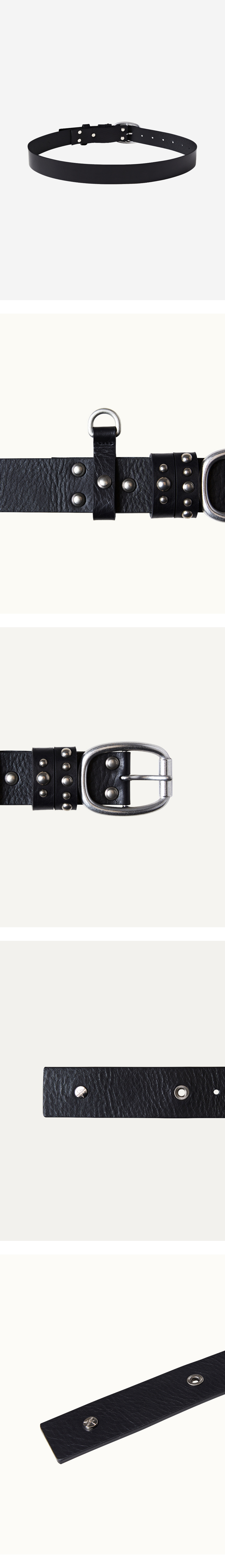 소가죽 소재 사용 유니섹스로 사용할 수 있는 길이감 베이컨트 심볼 리벳 포인트 빈티지 무드의 도금 장식 사용