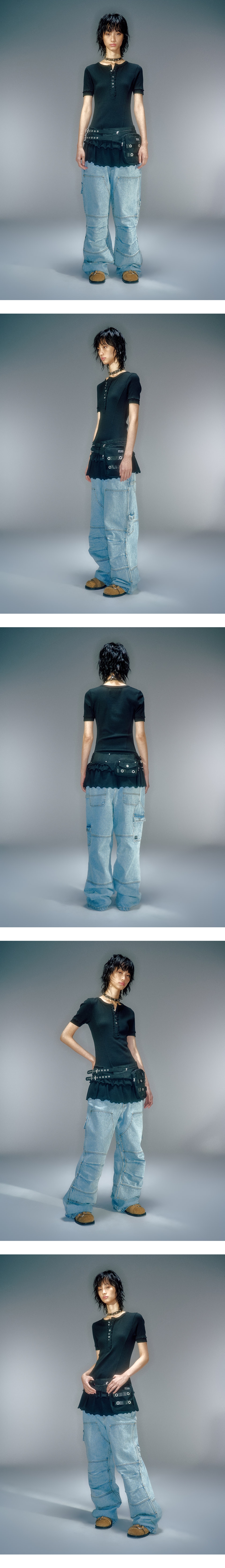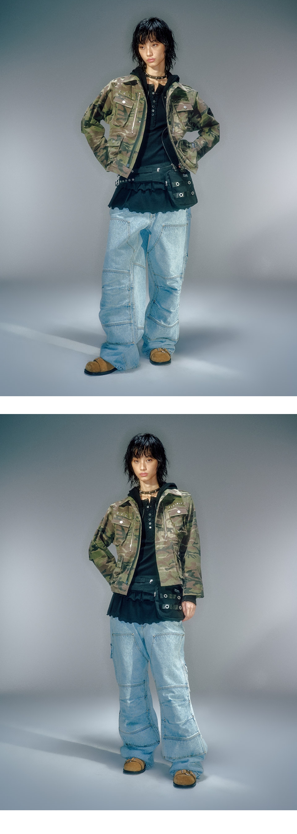 코듀라 소재의 사용으로 강한 내구성과 높은 활용성 두개의 포켓으로 수납력을 높임 더블 벨트의 워크 웨어 스타일 힙색 벨트 착용 방법에 따라 다양한 스타일링 가능 FREE (CM) Width : 68.5 Height : 8 Strap Lenght : 18