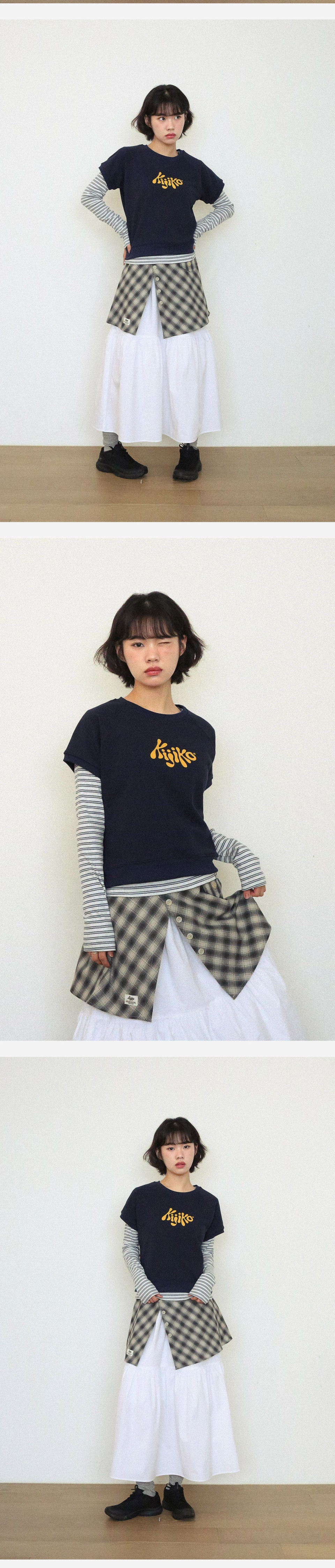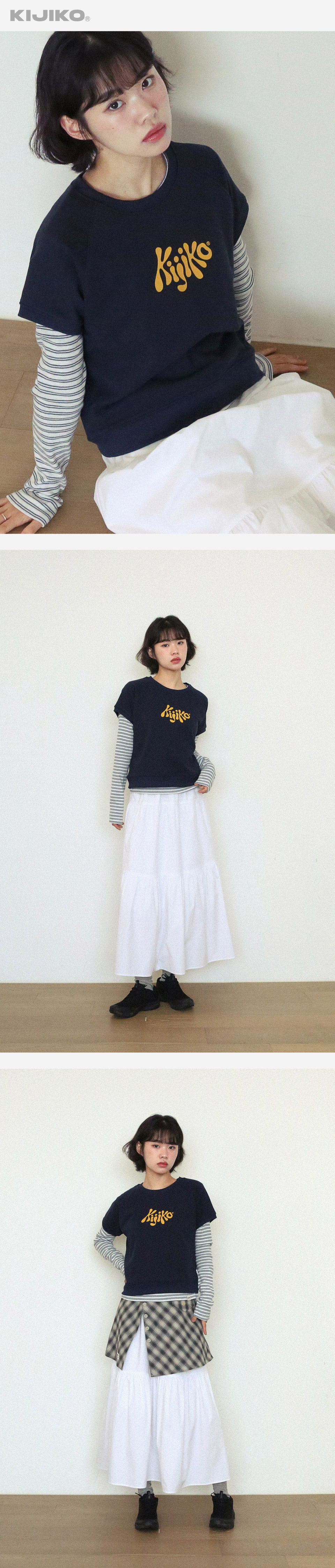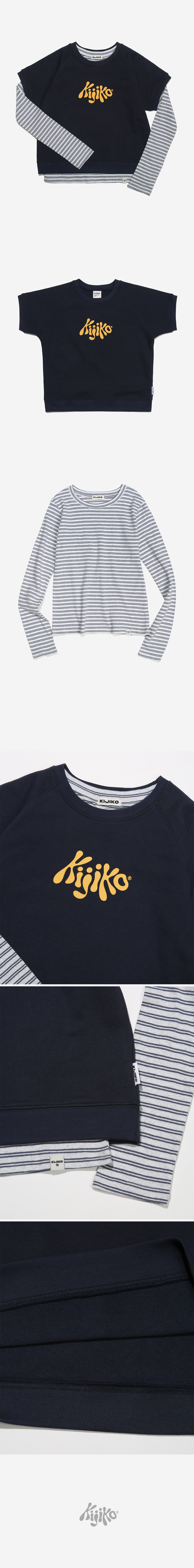 KIJIKO® DESCRIPTION • 레글런 로고 맨투맨&스트라이프 긴팔 레이어드 셋 - 맨투맨, 스트라이프 긴팔티셔츠가 셋트로 구성된 상품 • 로고 맨투맨 - 숏기장으로 부드러운 터치감의 원단 사용 - 커버 스티치 봉제기법을 사용, 내구성을 높인 제품 - 다른 제품과 매치하여 착용 가능 - 편안함을 주기위해 어깨선이 없는 레글런 패턴 사용 • 스트라이프 긴팔티 - 스트라이프의 색감이 산뜻한 분위기를 연출 - 밑단 키지코 포인트 라벨 • FABRIC - Sweatshirt - Cotton73% Poly27% - Stripe - Cotton100% • SIZE INFORMATION - Model - Height 163 / Wearing OS Size - One size - 로고맨투맨 - 총장/53 - 가슴단면/52 - 소매길이/23 - 스트라이프 긴팔티 - 총장/57 - 어깨너비/36 - 가슴단면/40 - 소매길이/61