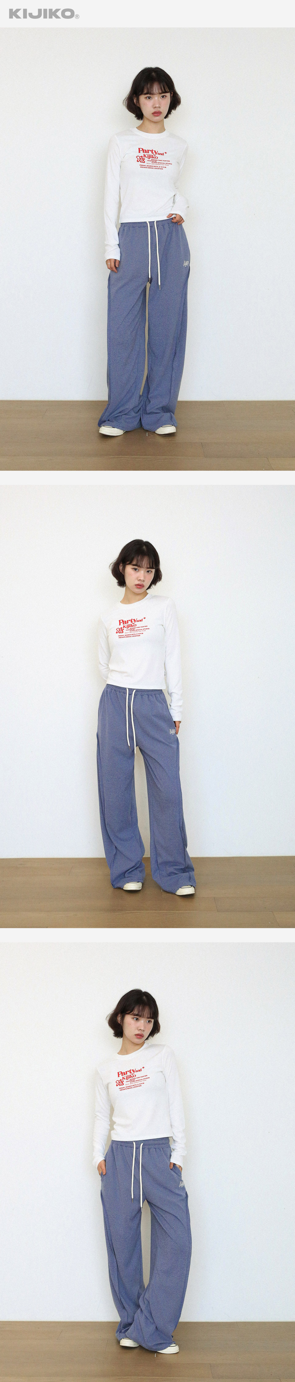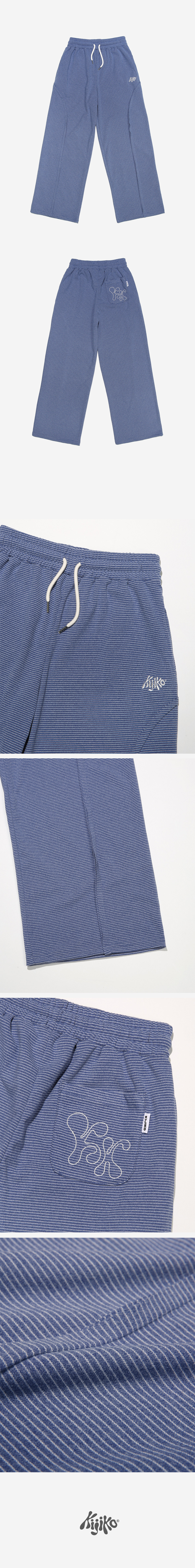 KIJIKO® DESCRIPTION • 키지코 로고 스몰 스트라이프 패턴의 원단으로 데끼 포인트 디자인의 스웻팬츠 - 부드러운 원단을 사용으로 착용시 편안함 강조 - 일자핏으로 허리는 밴딩으로 마감 - 앞면의 키지코 로고 자수 - 후면 포켓 키지코 심볼 자수표현 - 허벅지 옆라인 데끼로 표현 • FABRIC - Poly95% Span5% • SIZE INFORMATION - Model - Height 163 / Wearing OS Size - OS size - 총장/103 - 허리단면/32~51 - 엉덩이단면/53 - 허벅지단면/32 - 밑위/30 - 밑단단면/29