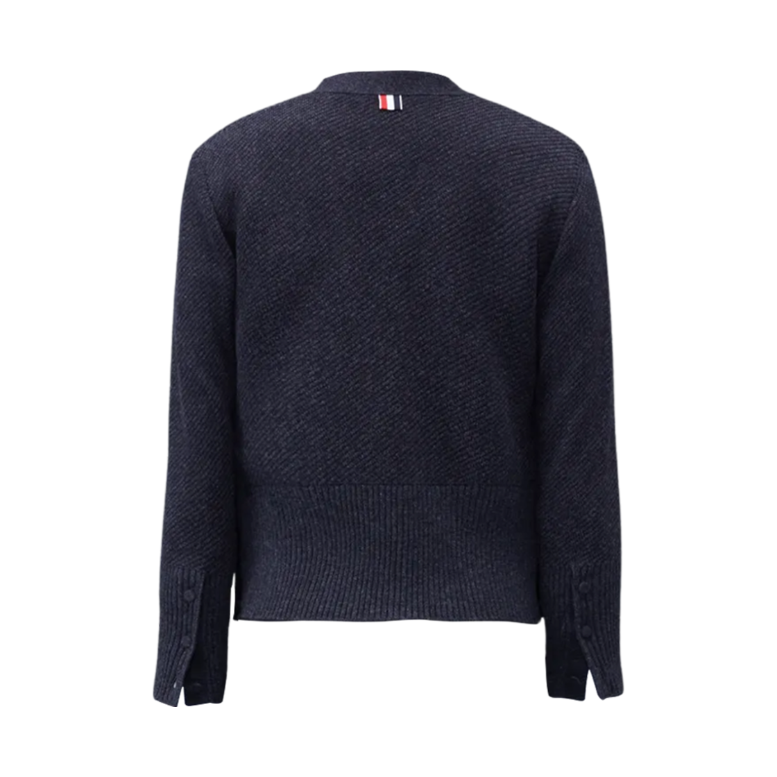 톰브라운 울 자카드 브이넥 가디건 블랙