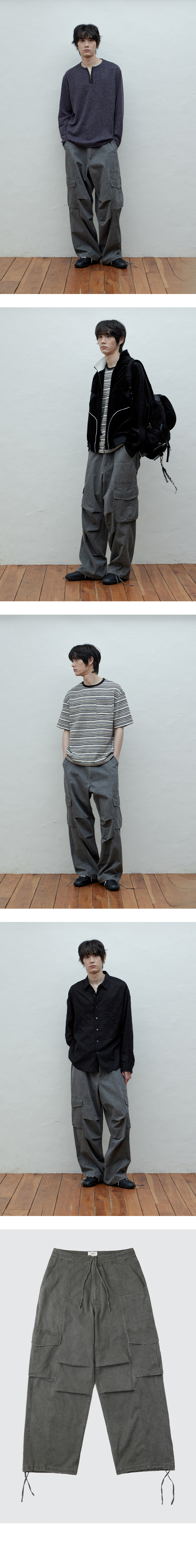 카치온 원단의 빈티지 색감과 워싱을 거친 듯한 카고 팬츠 전면, 플랩 포켓, 측면 카고 포켓, 후면 더블 웰트 포켓 디테일 무릎 절개, 핀턱으로 볼륨감있고 모던한 실루엣 연출 컬러: 차콜 원단: 면 100% 와이드 핏 플랩 포켓과 사이드 카고 포켓 무릎 절개, 핀턱 디테일 자연스러운 볼륨감 봄, 가을에 적합한 두께 MODEL SIZE1 : 187cm / 65kg L SiZE - 측정 기준에 따라 1~2cm의 오차 범위가 발생할 수 있습니다. - 워싱 상품으로 개체 별로 1~2cm 오차 범위가 발생할 수 있습니다. 주문 시 르아제 "라임바질만다린" 향을 박스 안에 분무하여 출고 합니다. 향을 싫어 하실 경우 배송 메세지 함에 향X 라고 기재 부탁드립니다.
