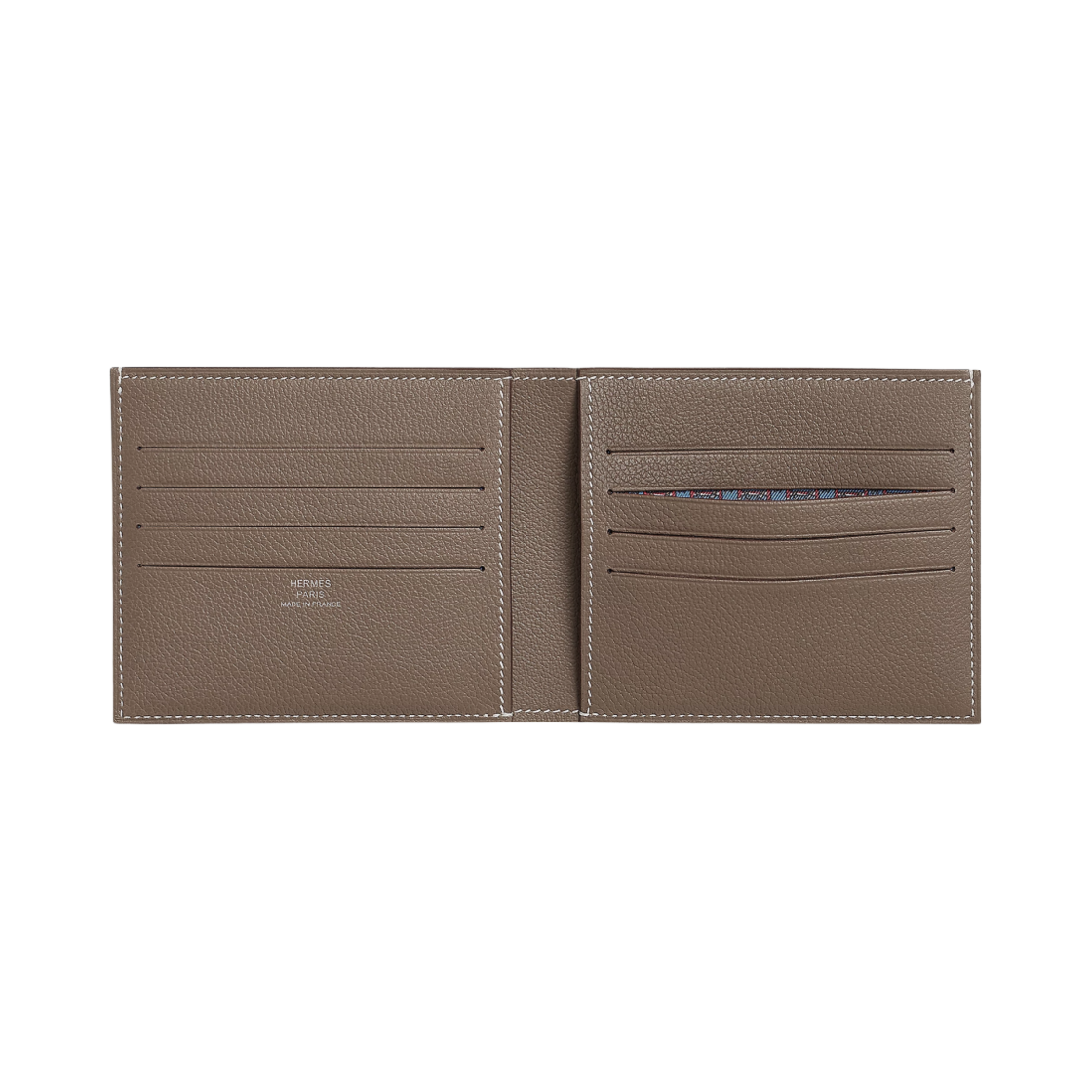 Hermes Citizen Twill Compact Wallet Evercolor & Etoupe Bleu De France Bleu Saphir