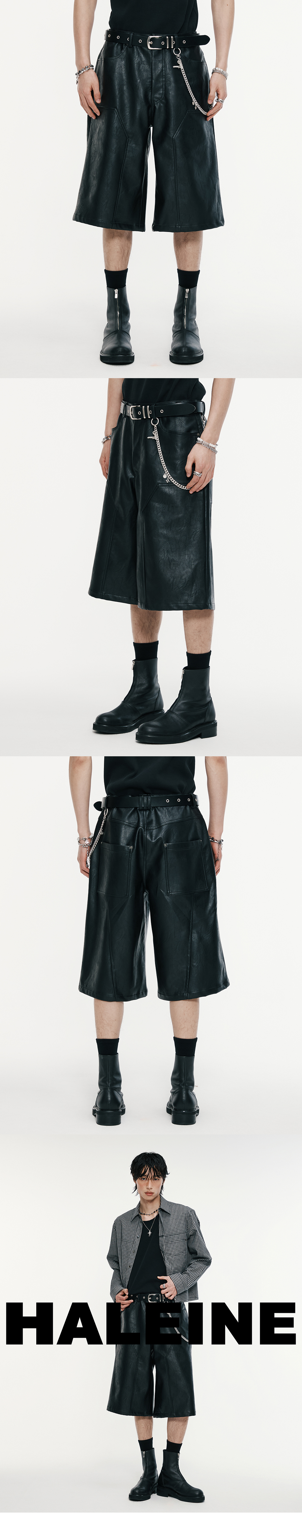 Haleine Carpenter Faux Leather Bermuada Shorts Black (WB117)