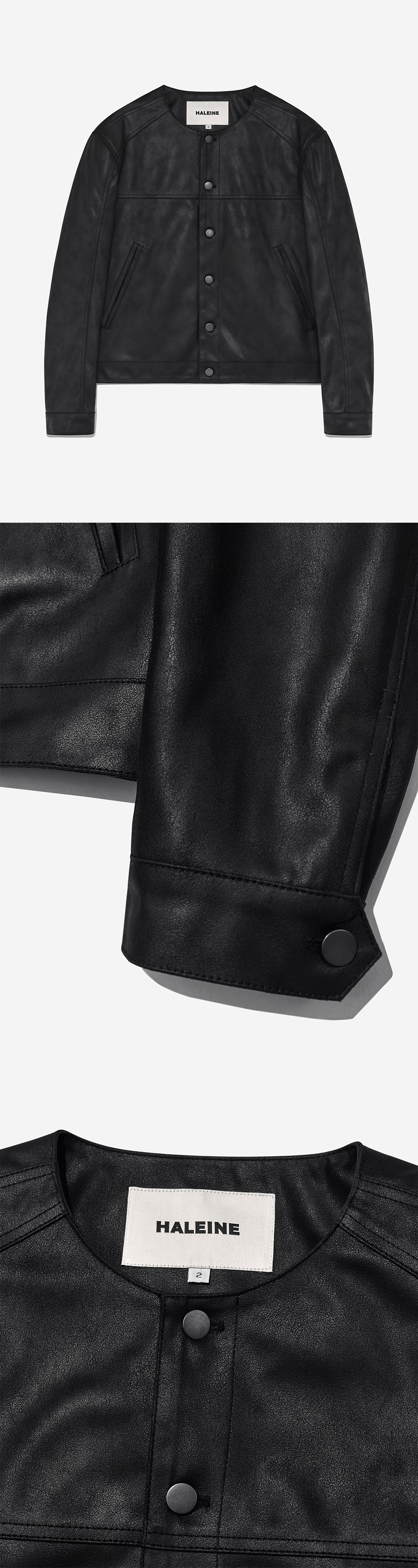 알렌느 크롭 칼라리스 포우 레더 자켓 블랙